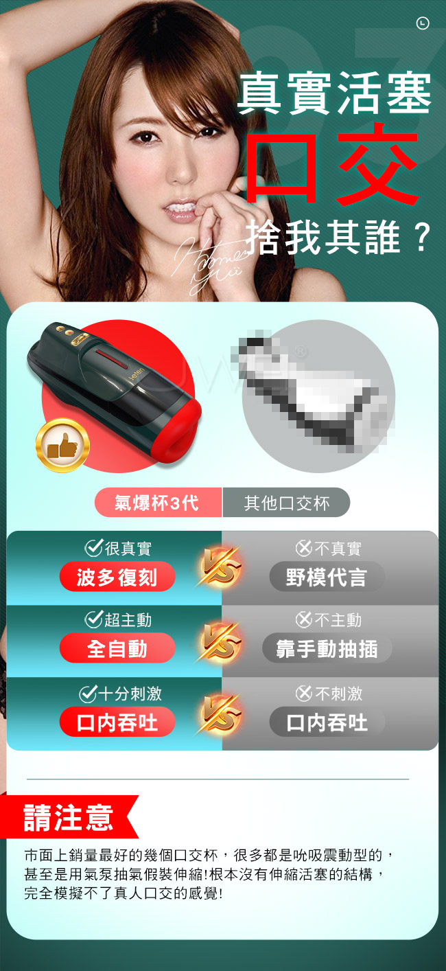 優之王波多野結衣絕讚口技讓男優們都稱讚!她將化身氣爆口交杯, 主動含住你,並在嘴里活塞吞吐,體驗她主動迎上來的口愛快感, 7種節奏,7種口愛玩法,無級調速加上7種粉絲票選的鍾愛頻率每次開機, 都能變換不同姿勢與心情,等你來解鎖......