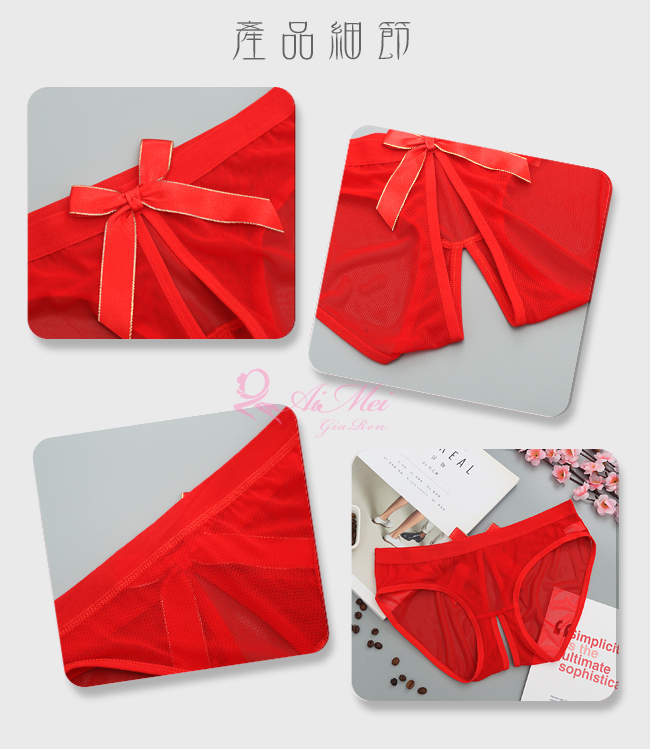 誘惑花園!薄紗蝴蝶結後開檔三角褲﹝玫紅﹞