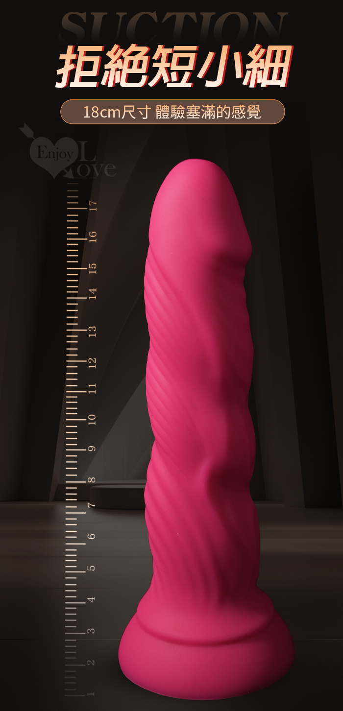 Enjoy Love ‧ 真肉感A 龍麟紋波浪 7吋液態矽膠軟Q肉彈加固吸盤老二棒﹝洋紅﹞任揉任彎 永不變形