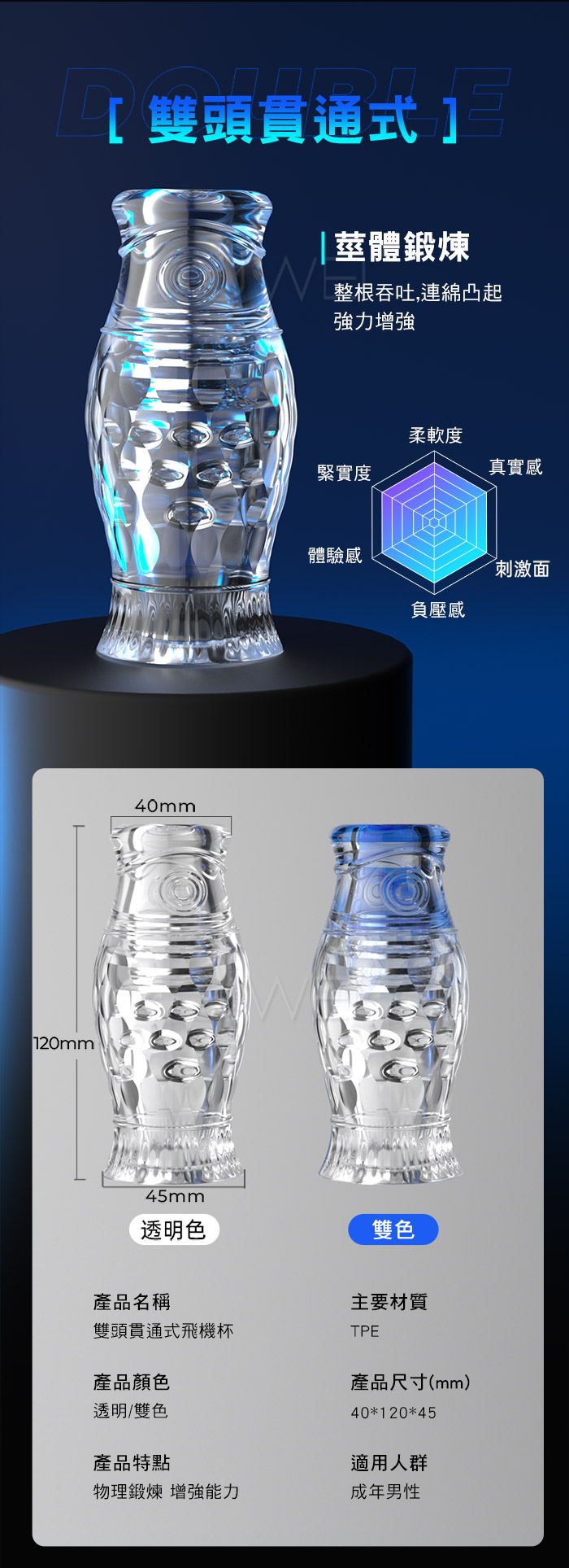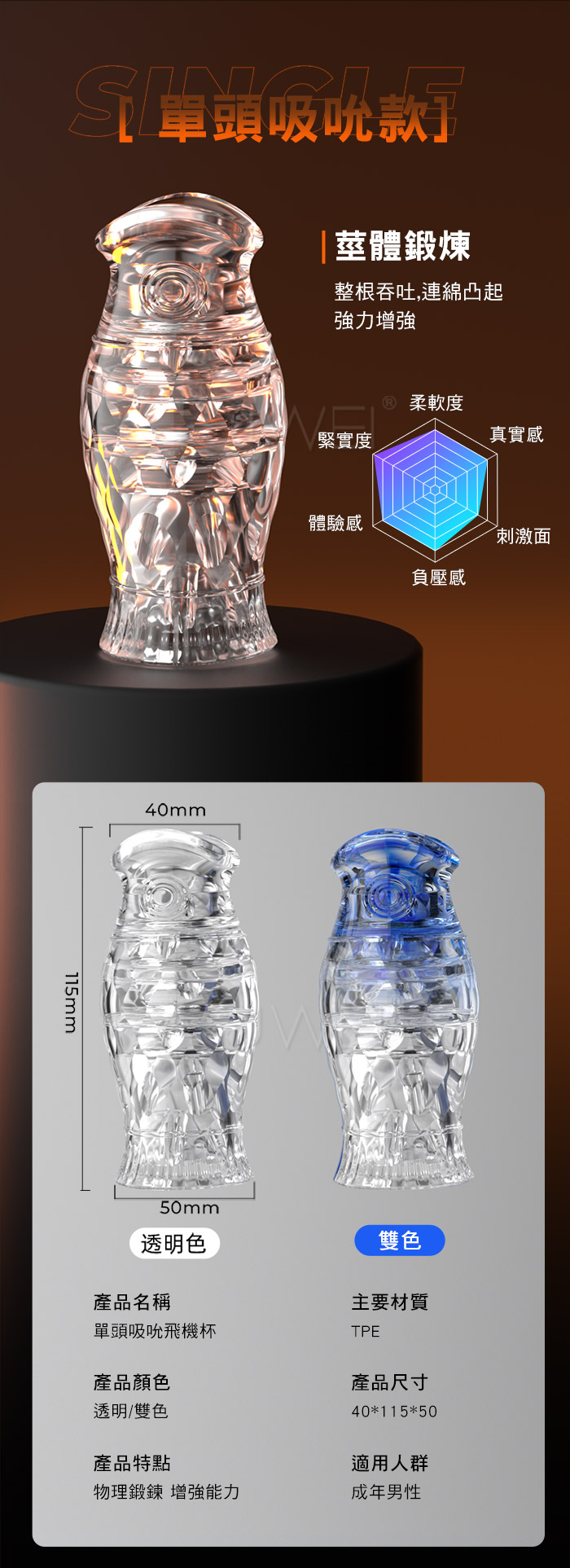 PHYSICAL EXERCISE強化訓練.單頭吸吮莖體鍛煉飛機杯- 透明