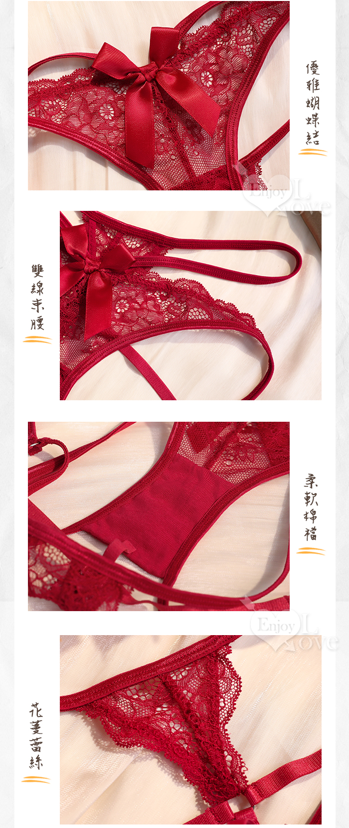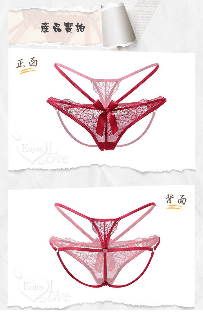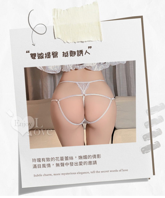 多線束縛透視花蔓蕾絲輕薄丁字褲﹝黑﹞