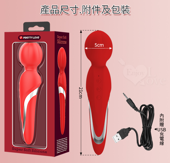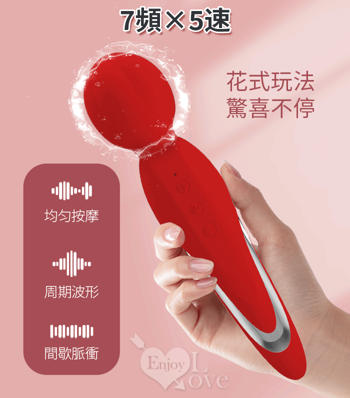 派蒂菈 ‧ Fitzgerald 情慾 強勁5力度x7震頻時尚浪潮大AV按摩棒﹝親膚軟矽膠+USB充電+深度防水﹞艷紅