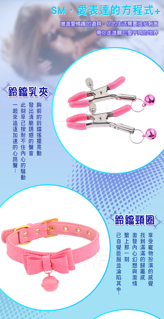鈴鐺乳夾,胸前的鈴鐺搖擺晃動,發出清脆誘惑的聲音,此刻早已按耐不住內心的騷動,一起來追逐加速的心跳聲!