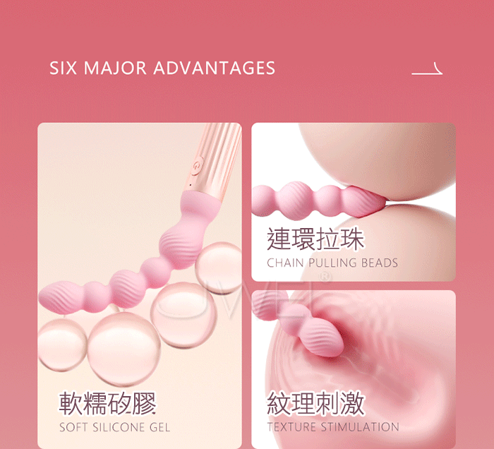 謎姬 MizzZee. 欲情.10頻深入強震圓潤絲滑後庭開發拉珠按摩棒 (粉色-震動款)