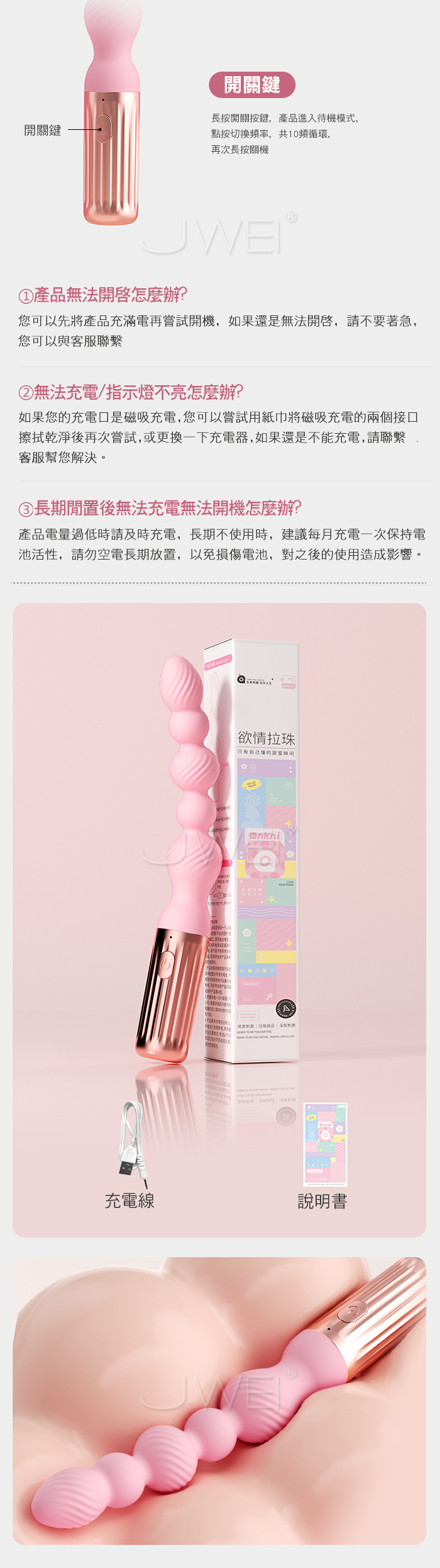 首頁>謎姬 MizzZee. 欲情.10頻深入強震圓潤絲滑後庭開發拉珠按摩棒 (粉色-震動款)