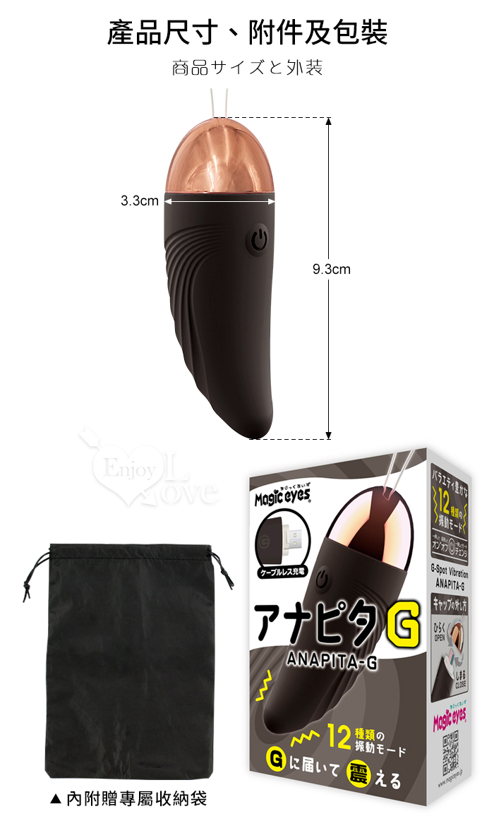 日本Magic eyes.アナピタG 12變頻強震USB直插充電跳蛋按摩器﹝黑﹞