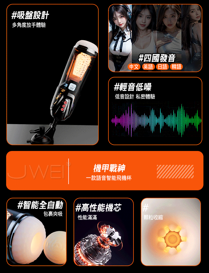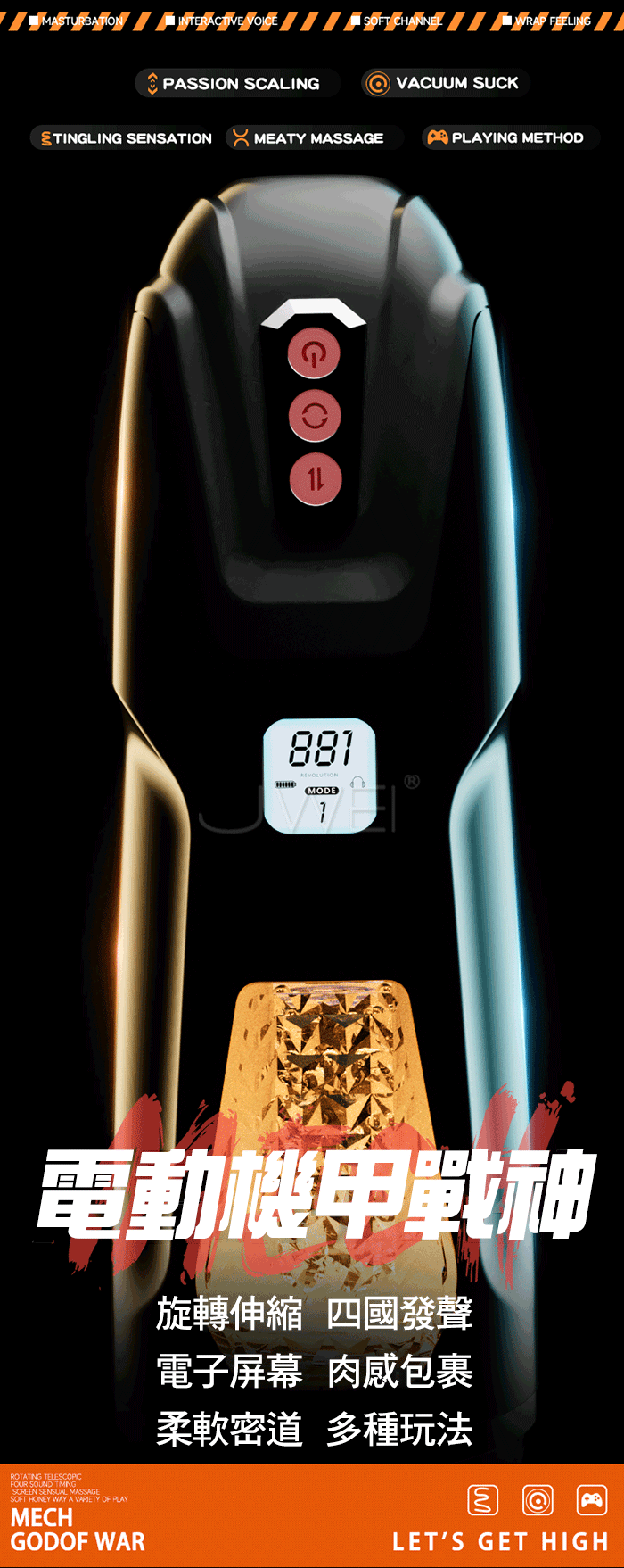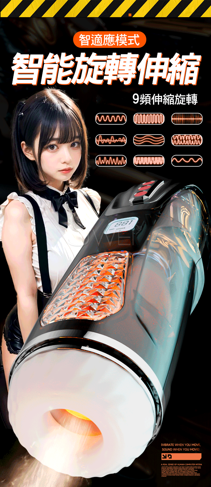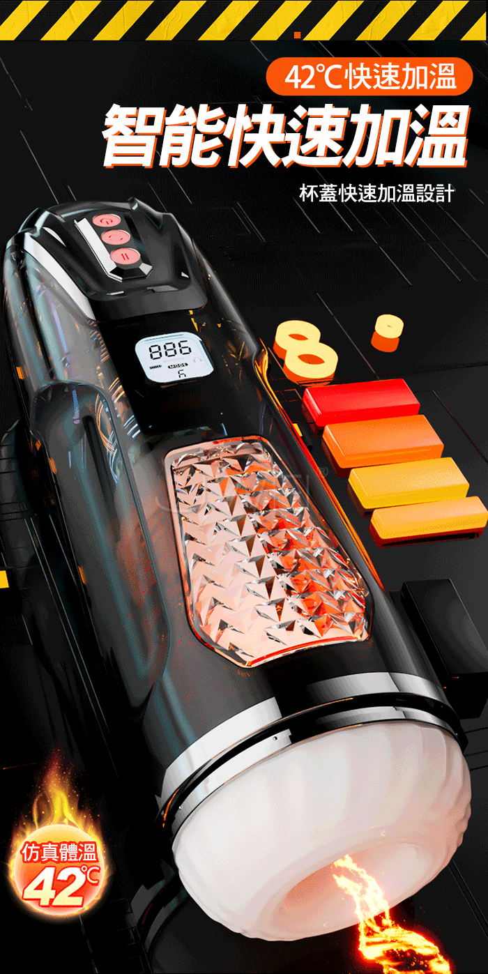 智能伸縮旋轉,體驗機甲戰神的智能模式 長距離伸縮約35mm,伸縮旋轉摩擦一應俱全,多重體驗 中英韓日,四國美女魅惑發聲,滿足你的觸覺聽覺視覺 42℃杯蓋加溫,全新設計更方便,加溫更快!! 產品規格 ■尺寸:大小詳如圖片標示 ■材質:TPE+ABS ■功能:9頻伸縮震動 ■供電:USB充電