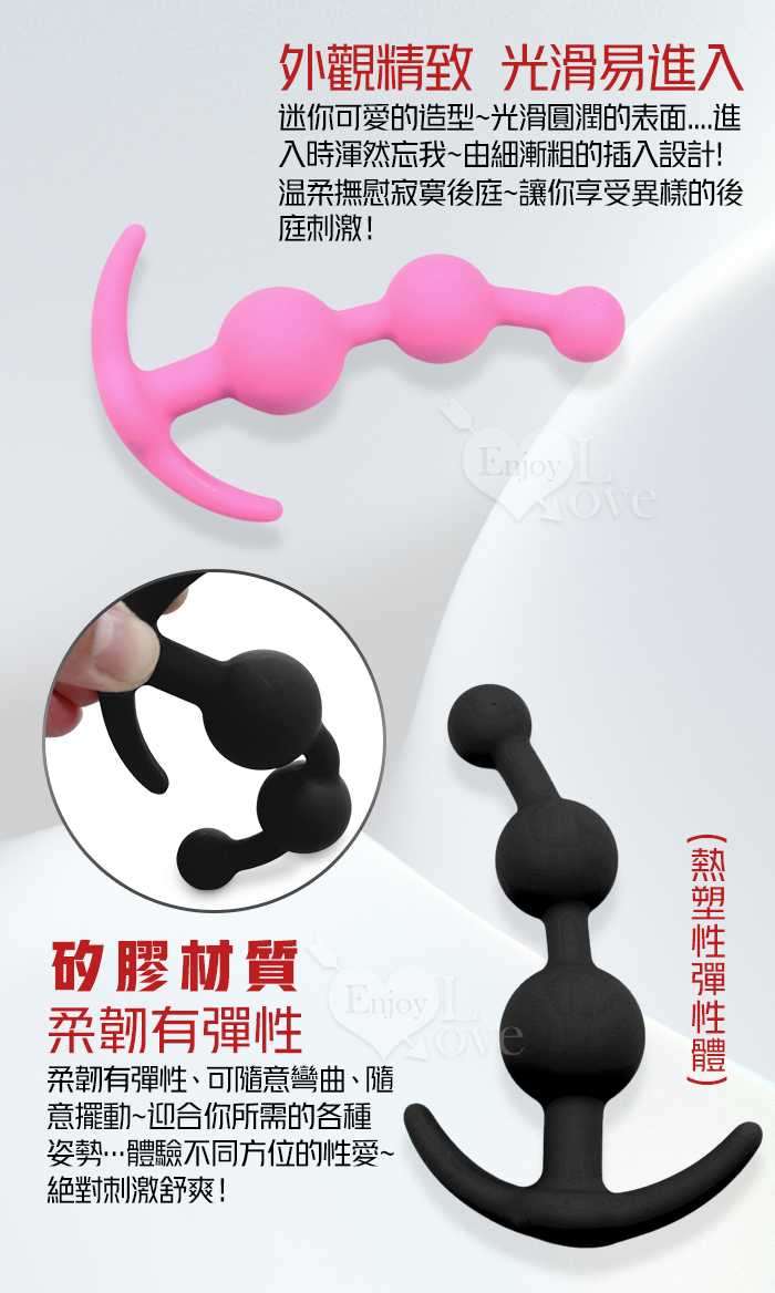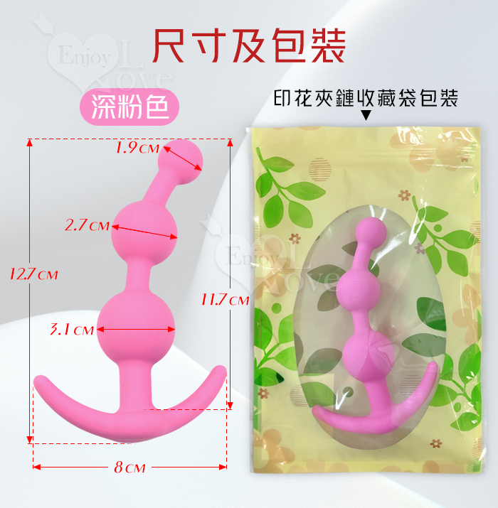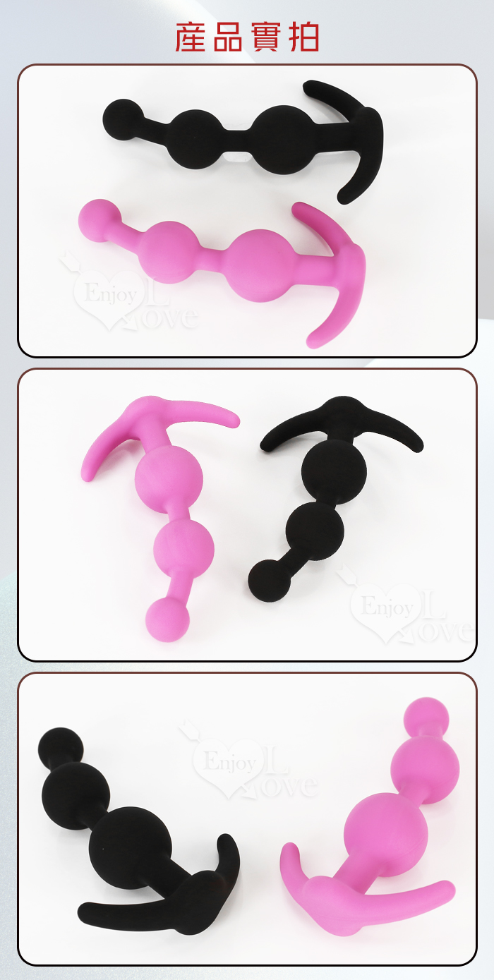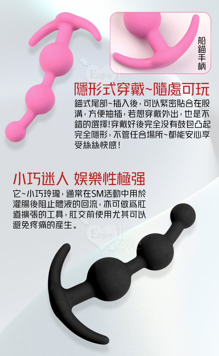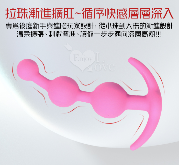 Enjoy Love ‧ 三珠肛塞 船錨手柄設計~矽膠膚質拉珠漸進擴肛菊花﹝玫紅色﹞