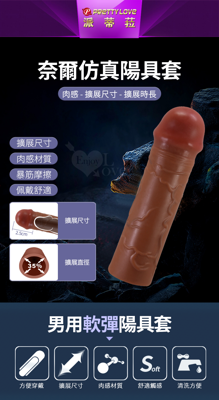派蒂菈 ‧ NILE 奈爾 仿真膚質陽具大龜頭加強套﹝L-2.5CM擴展尺寸/爆筋摩擦/肉感材質/配戴舒適﹞勇猛