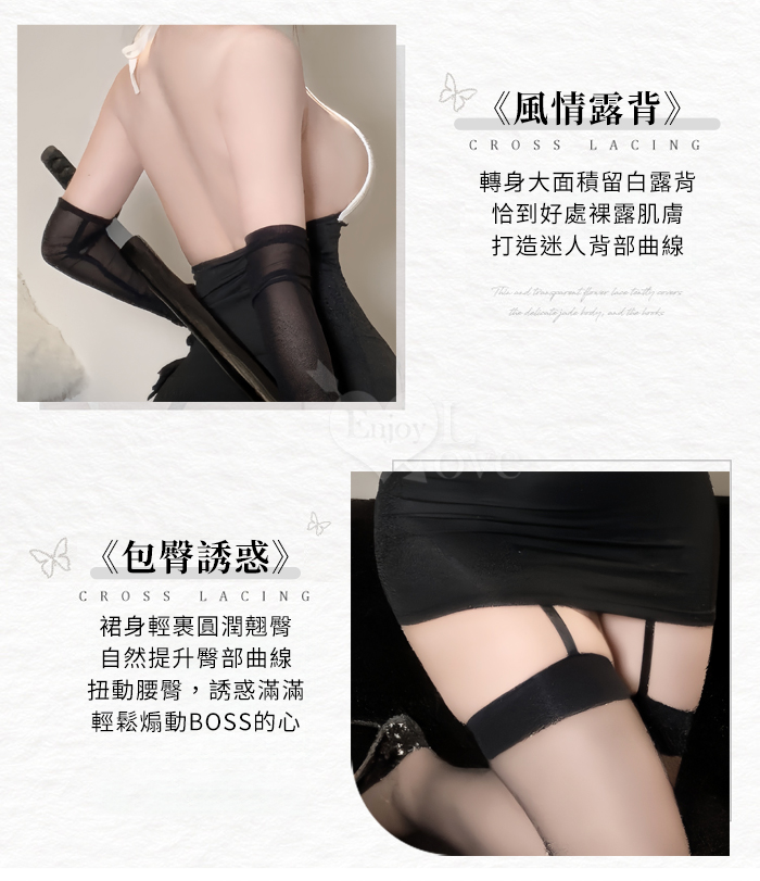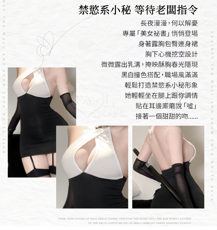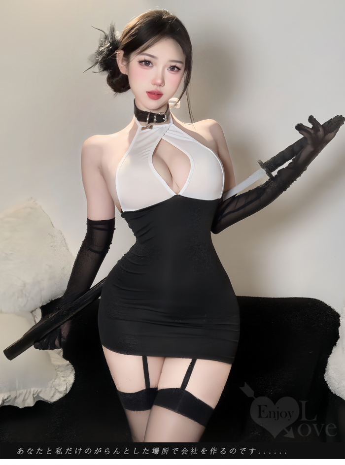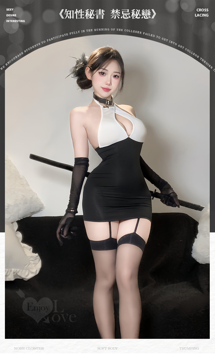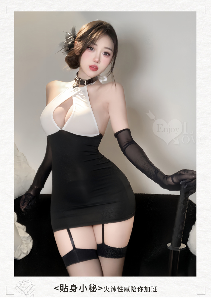 秘書角色扮演服!火辣鏤空綁脖蜜桃胸美背包臀連身裙五件式套装