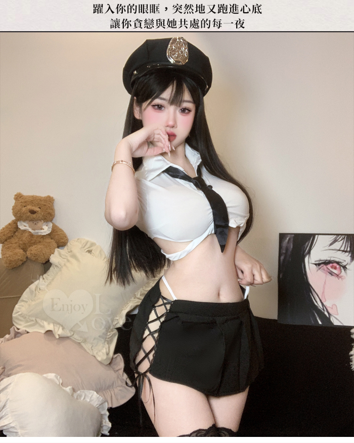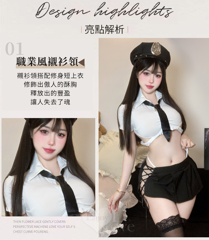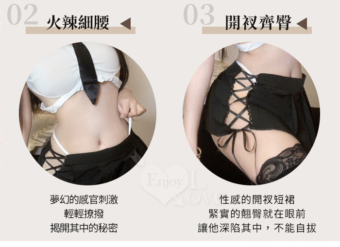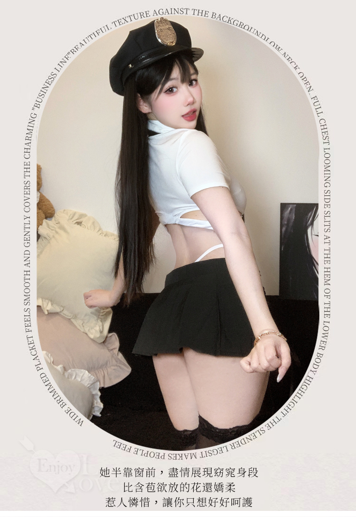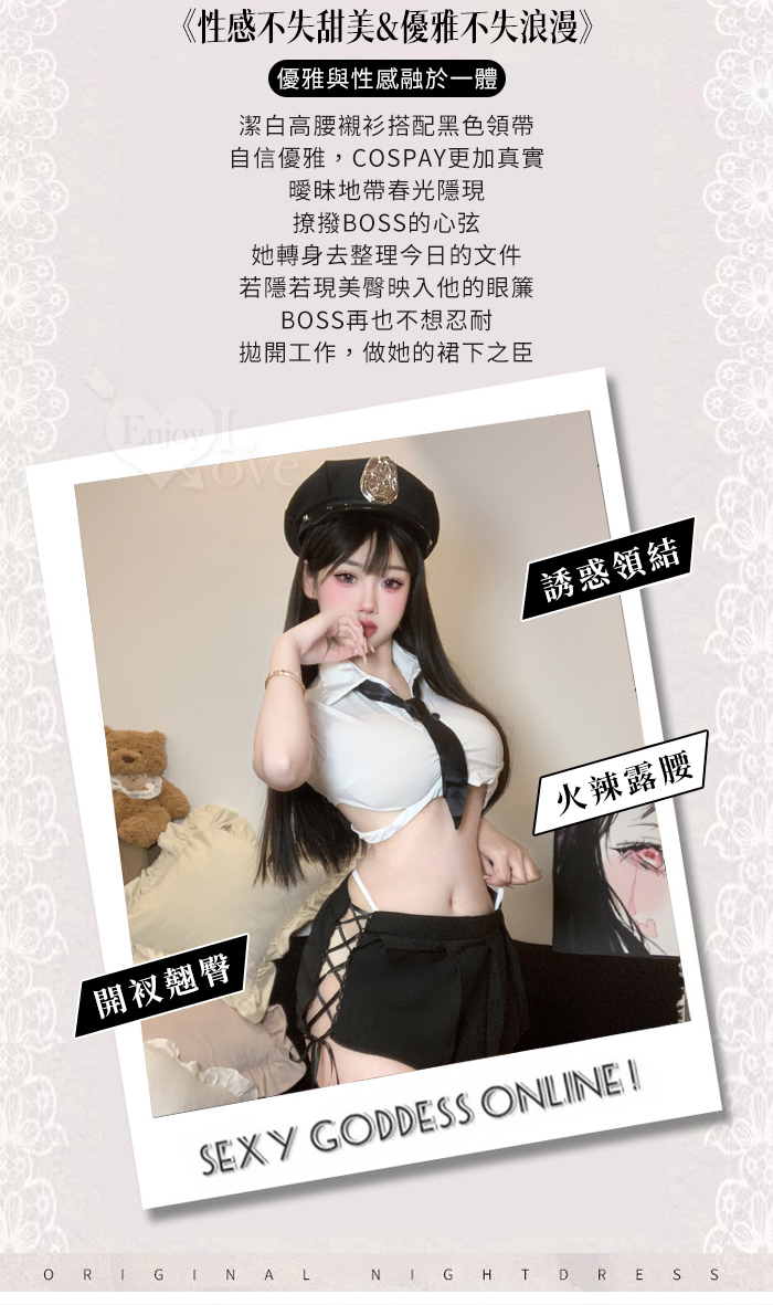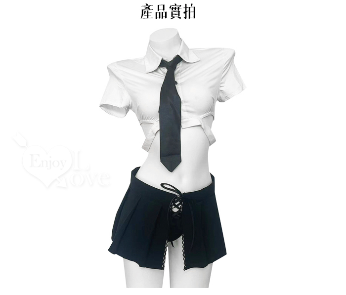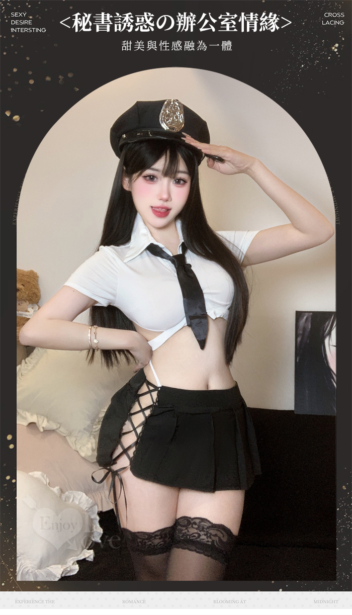 秘書角色扮演服!俐落襯衫領短上衣側綁帶露臀短裙五件式套裝