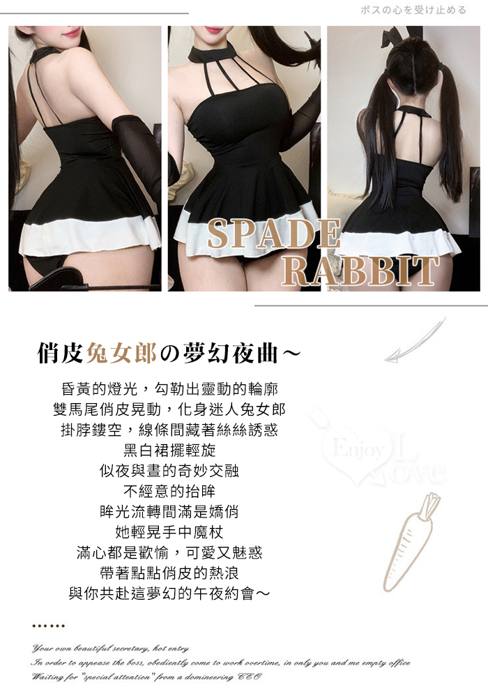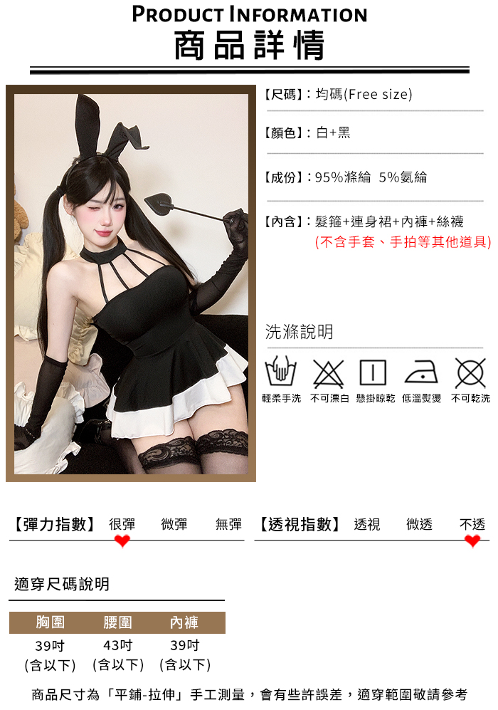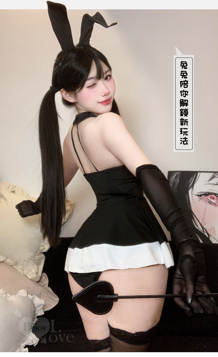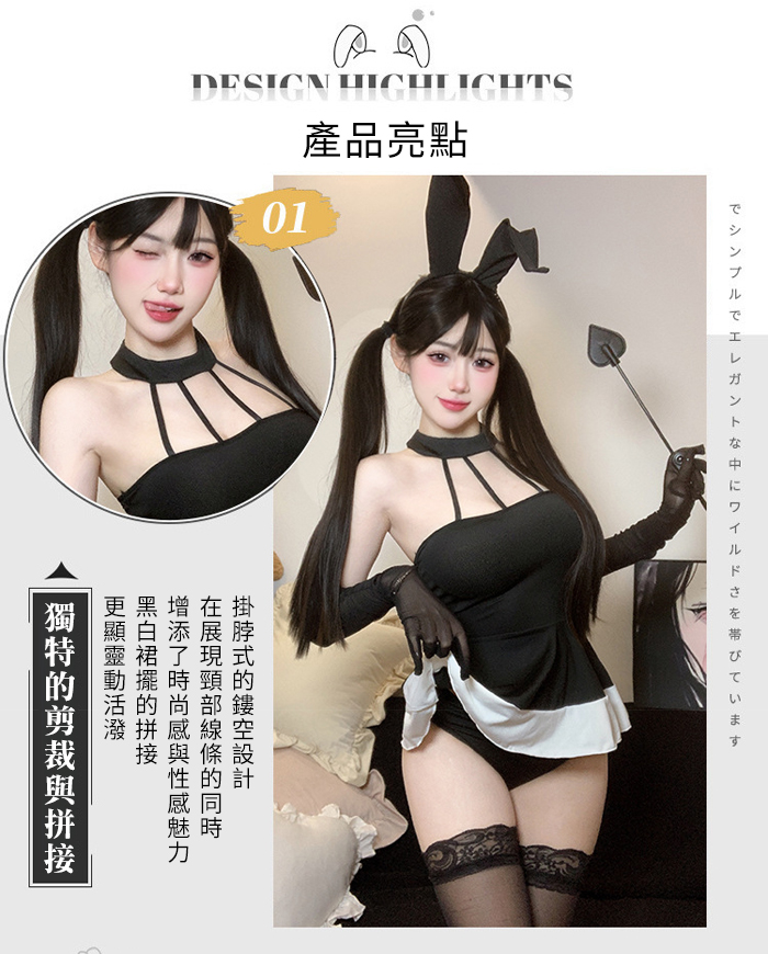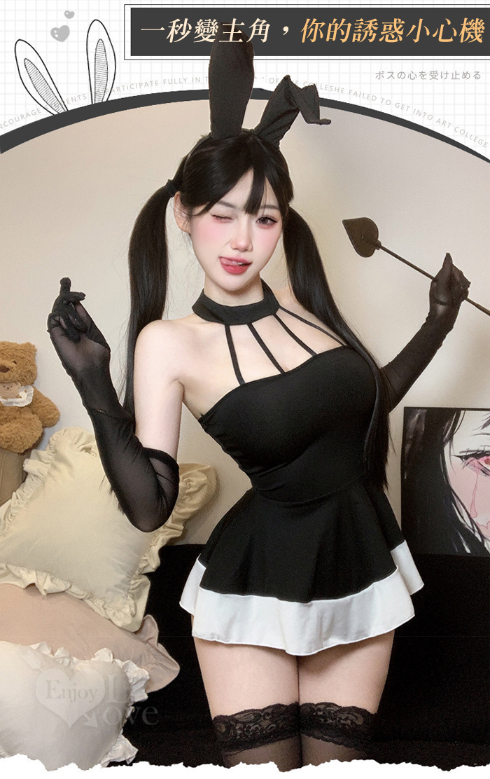 兔女郎角色扮演服!幾何感細緻束帶鏤空傘狀連身裙四件式套裝