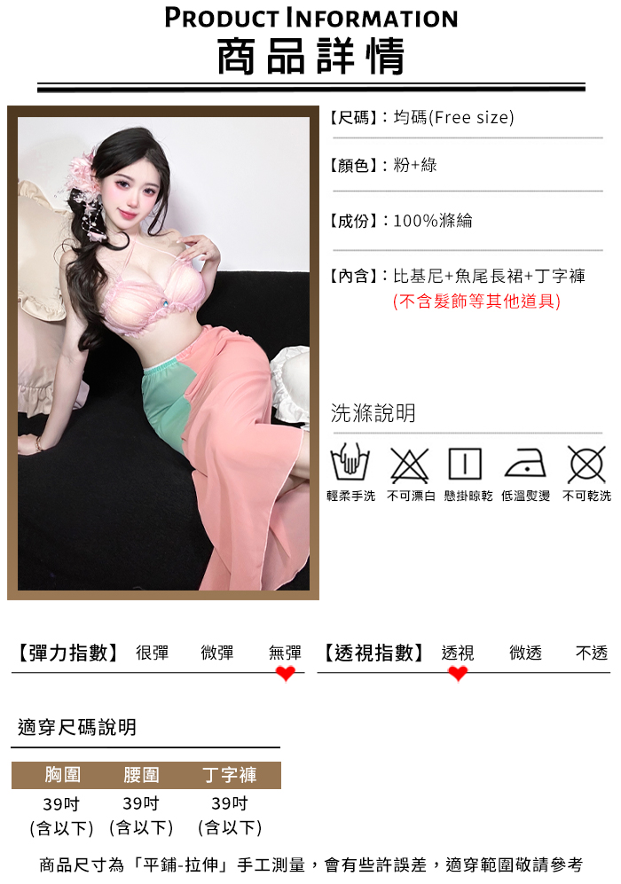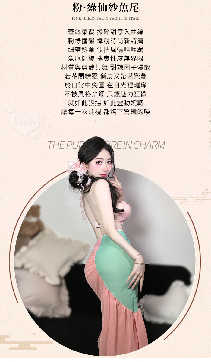 ►您現在的位置:首頁>美人魚角色扮演服!亮絲薄紗貝殼比基尼粉綠拼接魚尾裙三件組