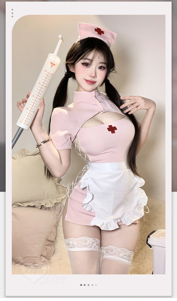 ►您現在的位置:首頁>護士角色扮演服!俏皮立領挖空露溝交叉綁帶連身裙五件式套装
