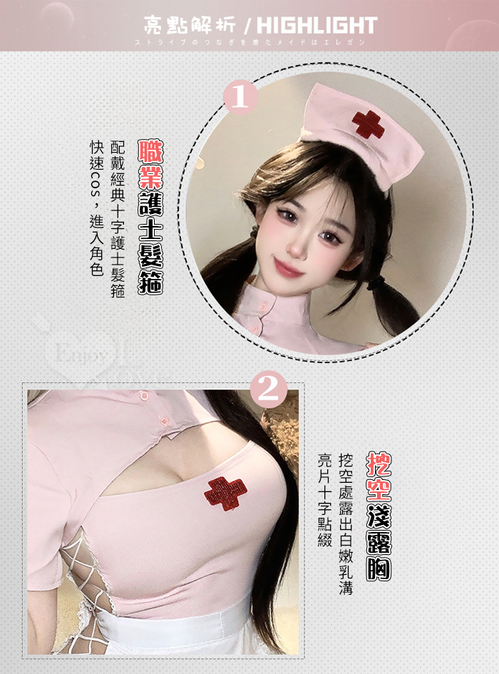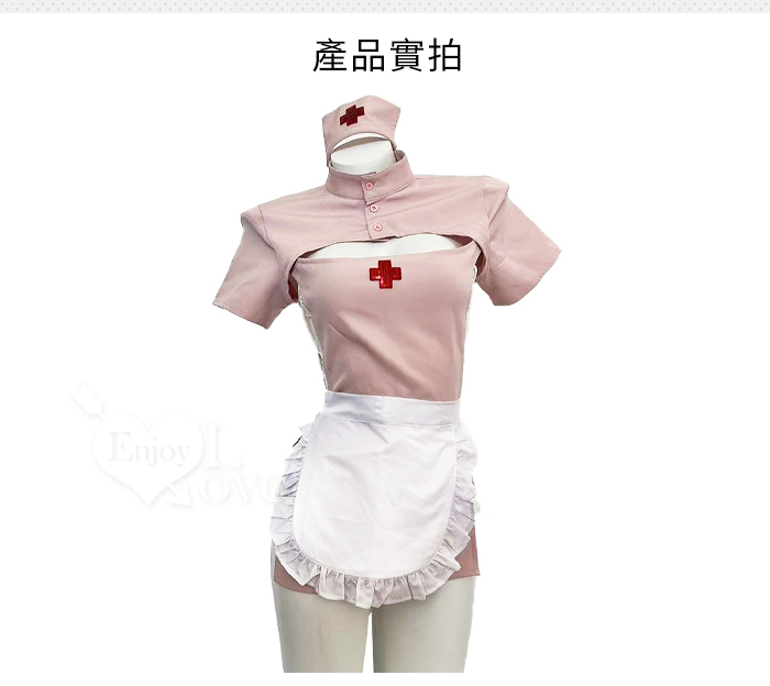 護士角色扮演服!俏皮立領挖空露溝交叉綁帶連身裙五件式套装