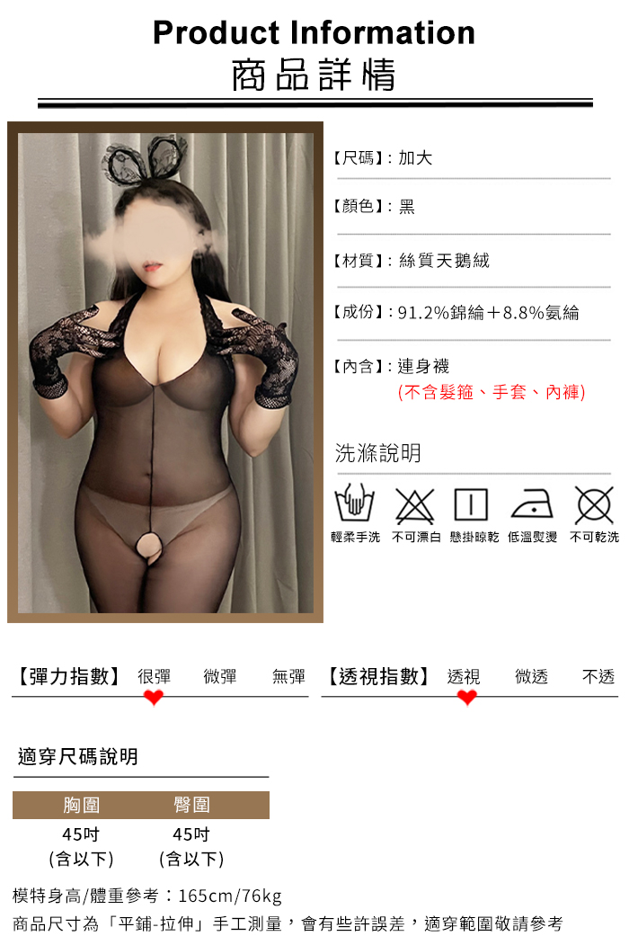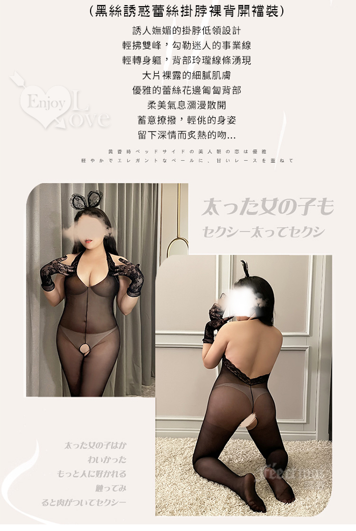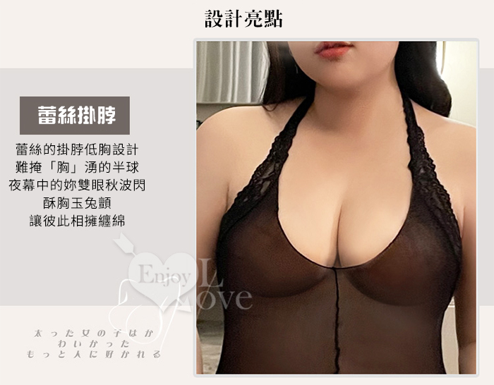 【棉花糖女孩】大尺碼絲襪連身衣!黑絲誘惑蕾絲掛脖裸背設計開襠裝