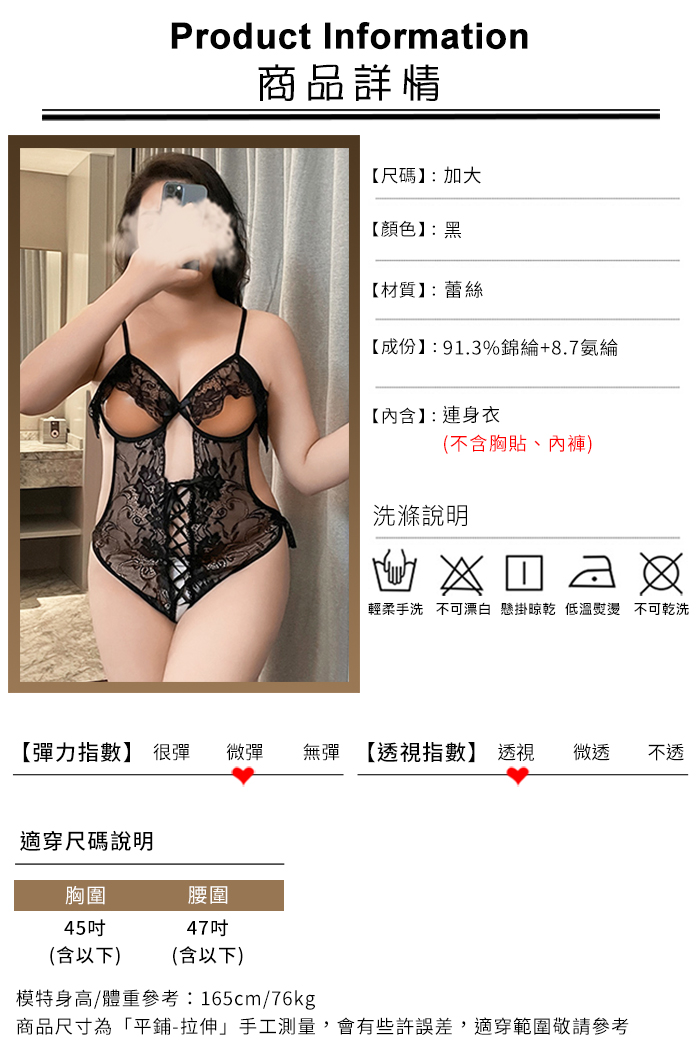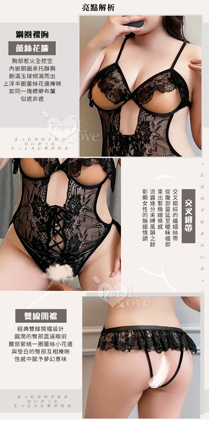 【棉花糖女孩】大尺碼狂野連身衣!可調節細肩鏤空美胸交叉裸腹激情免脫開襠裝