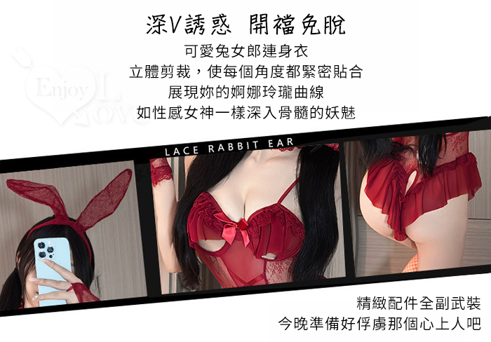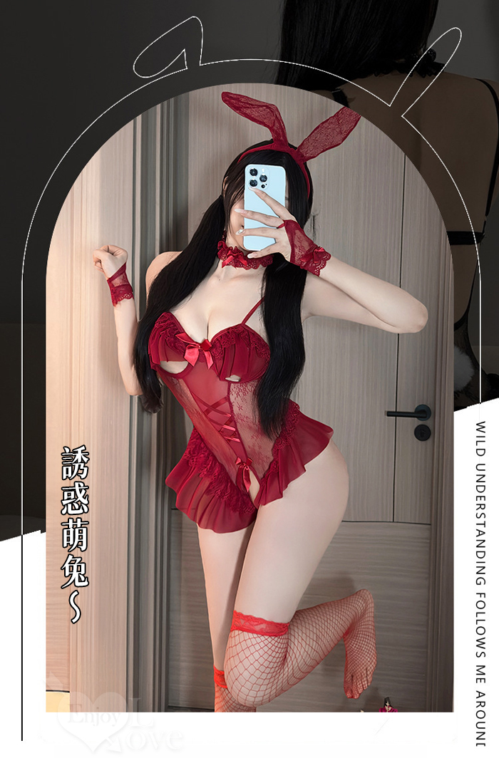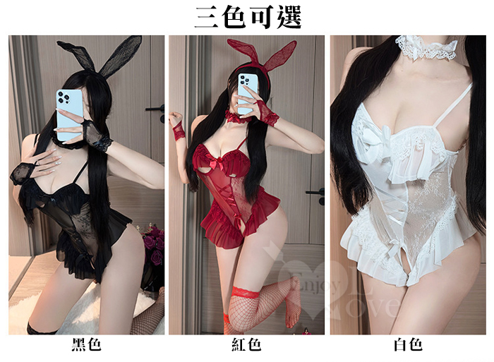 兔女郎角色扮演服!鏤空鋼圈露乳洞洞薄紗透視開襠連身衣五件式套装﹝白﹞