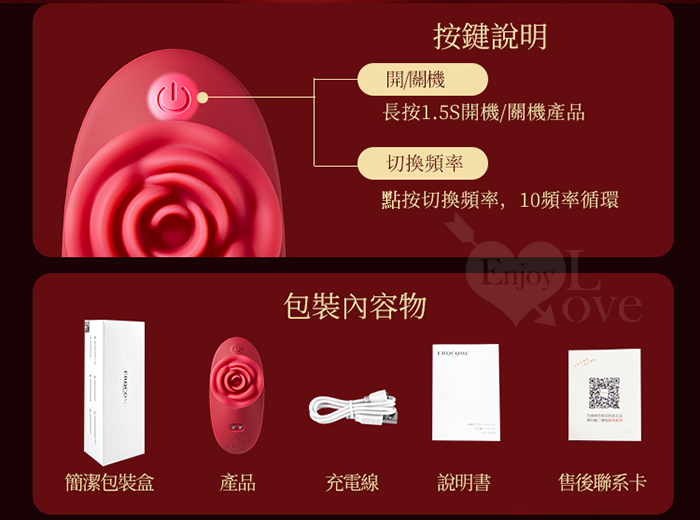 EROCOME伊珞.ROSE PLUSE 玫瑰脈動 立體突擊一點即潮 10高頻沖擊強勁動力花樣綻放按摩器