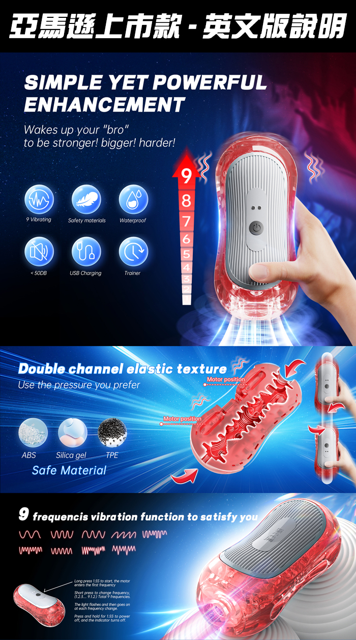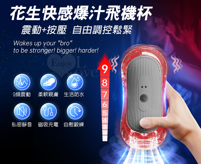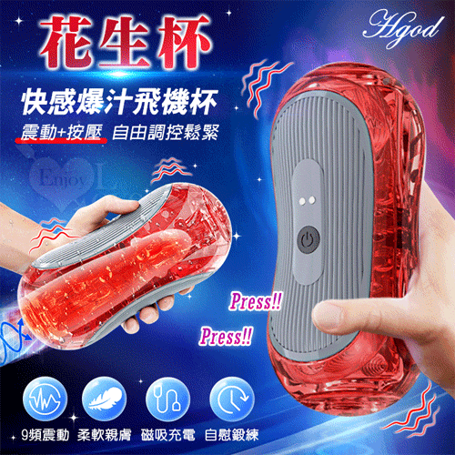 Hgod 花生杯 ‧ 雙頭按壓式自由調控鬆緊快感爆汁飛機杯﹝9頻強勁震動/5D衝擊通道/磁吸充電/自慰/鍛練﹞*亞馬遜上市款*