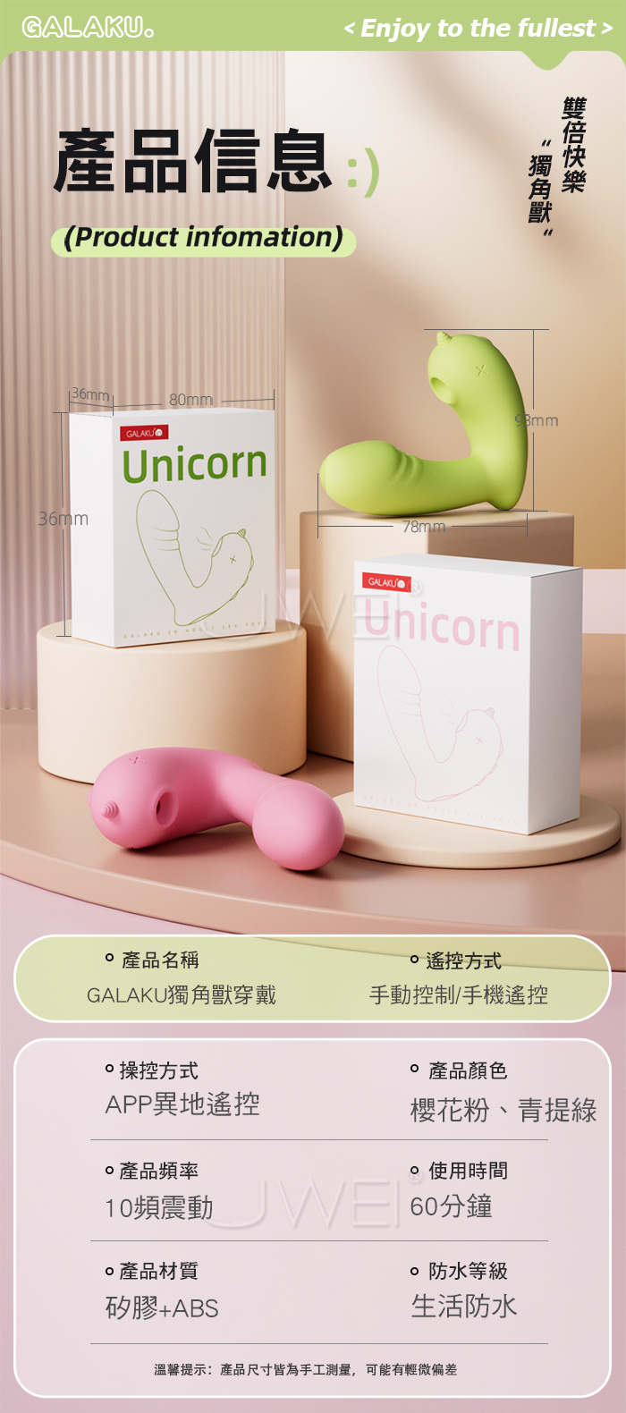GALAKU.獨角獸 10X10 強吻激震雙倍快樂 APP智控穿戴跳蛋【粉色】