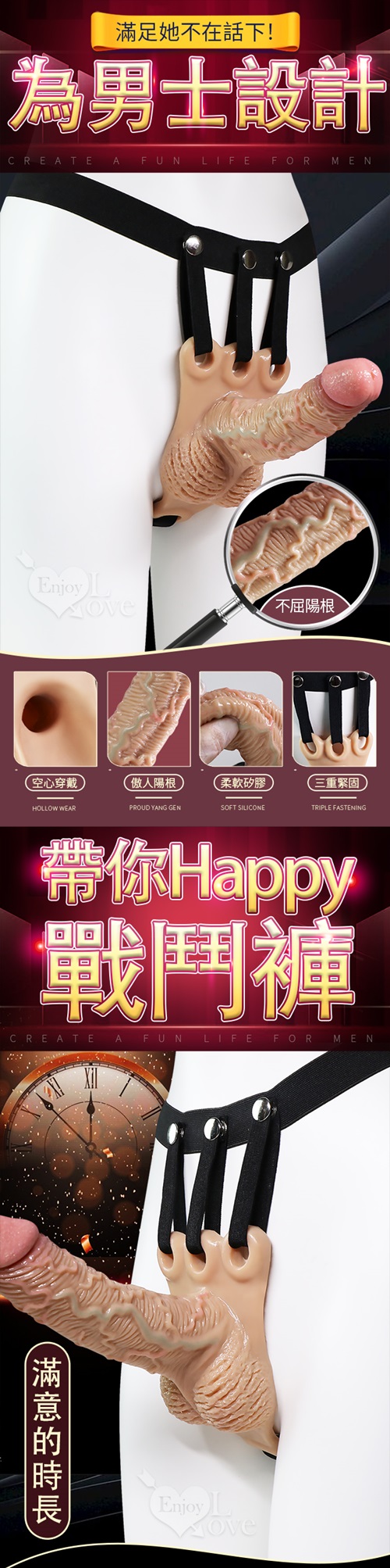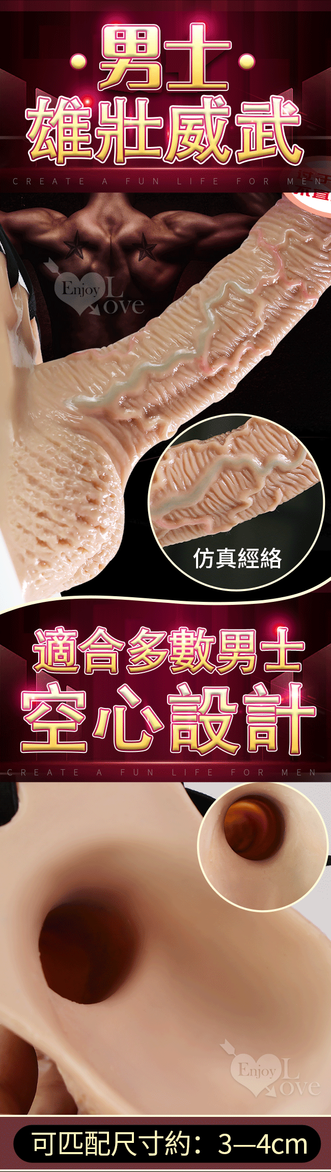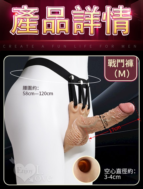 戰神 男用空心矽膠穿戴老二按摩棒-中號