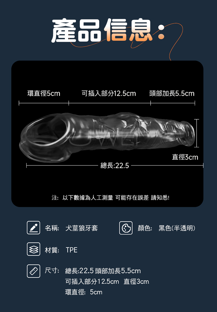 首頁>犬莖狼牙套.18cm加長加粗 內置儲精囊 仿真青筋陽具套
