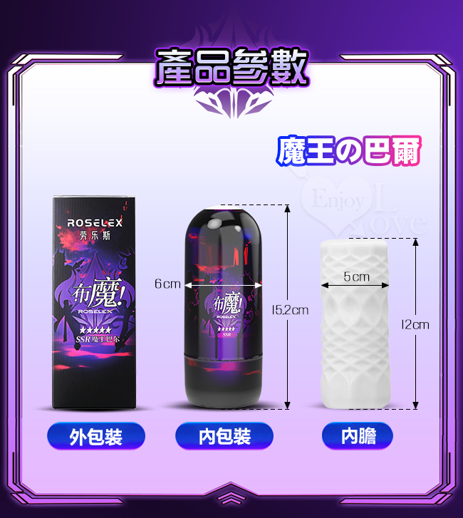 ROSELEX 勞樂斯‧ 布魔 緊實包覆/不規則紋理 非貫通蜜道自慰套﹝魔王巴爾﹞