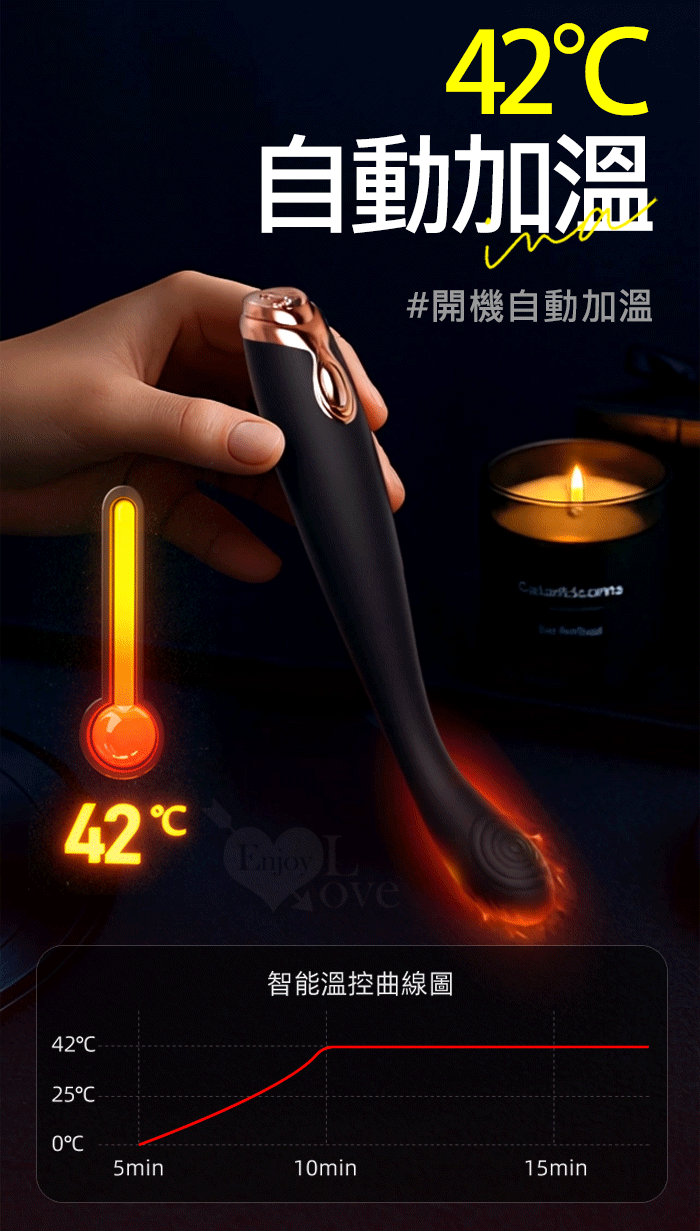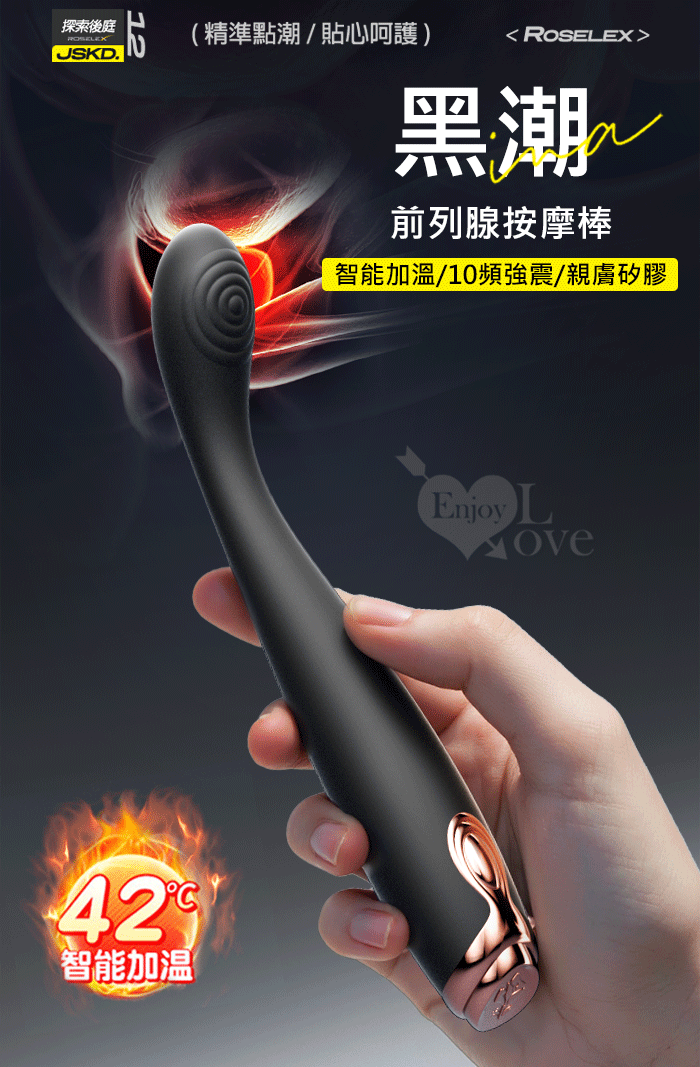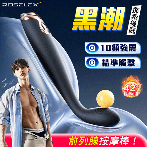 ROSELEX 勞樂斯 ‧ 黑潮 10頻震精準觸擊前列腺按摩棒﹝智能加溫/曲線收腰易入/親膚矽膠﹞