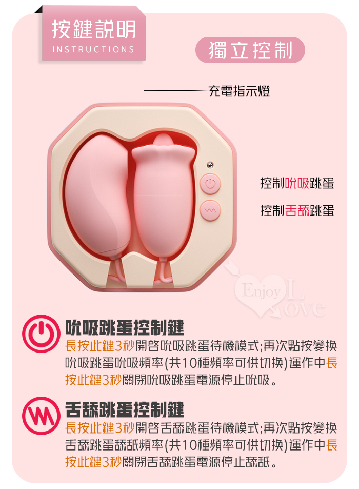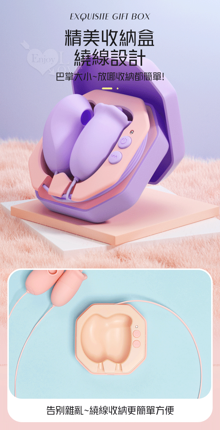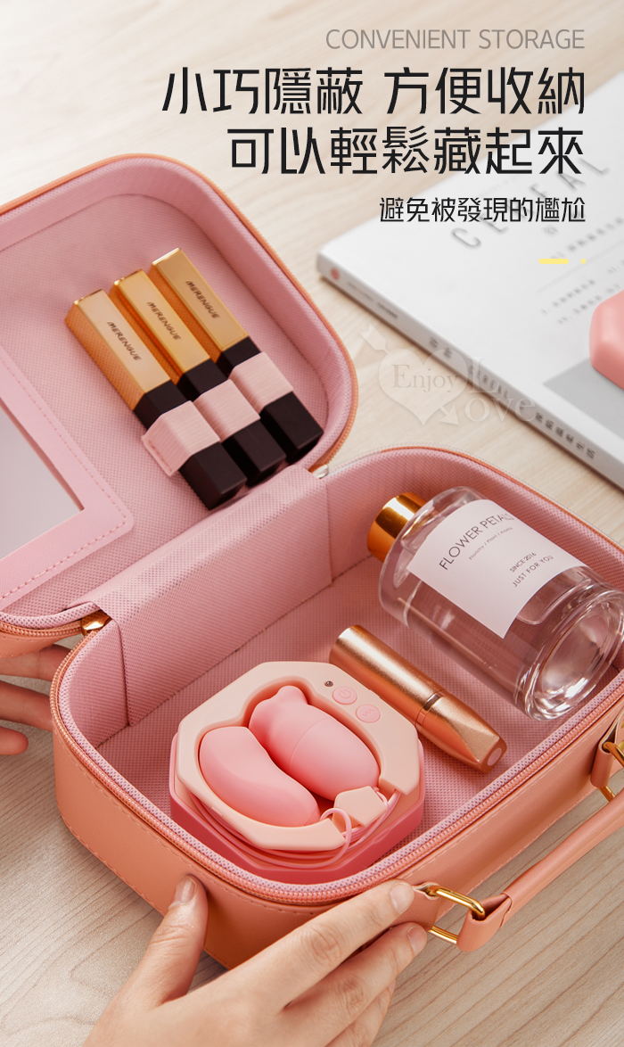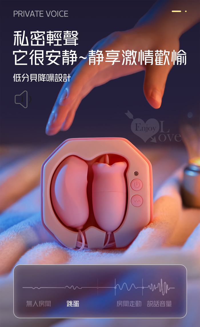 ROSELEX 勞樂斯 ‧ 吻喜 10X10吸震遊走+舌撩陰乳 隱密盒裝舔吸組合雙蛋﹝內外同享+可獨立控制+USB充電﹞粉