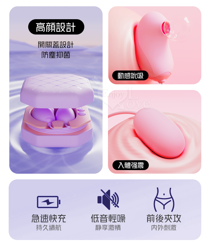 ROSELEX 勞樂斯 ‧ 小魔盒 10段變頻吸吮+震動 精美隱密盒裝圓吸組合雙蛋﹝內外同潮+可獨立控制﹞紫