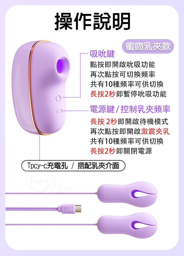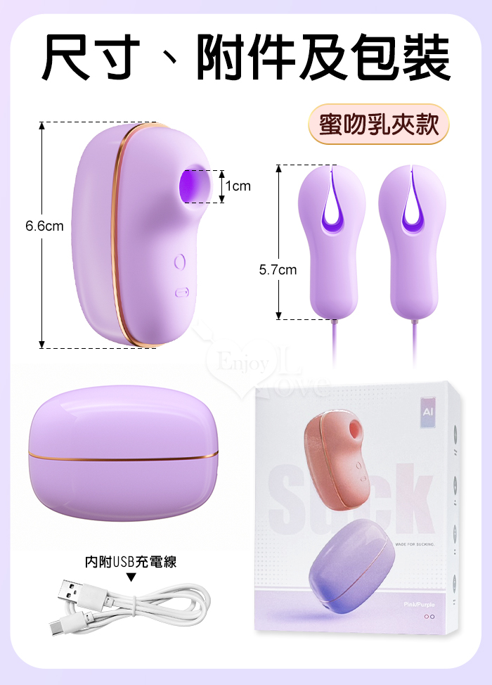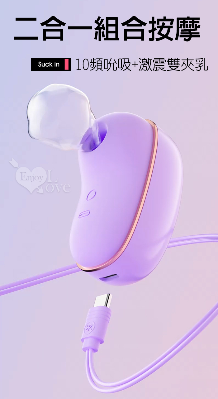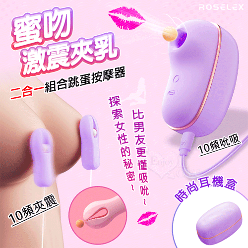 ROSELEX 勞樂斯 ‧ 蜜吻乳夾款~吮吸+激震雙夾乳二合一組合按摩器﹝10頻調控+時尚耳機盒+USB充電﹞紫