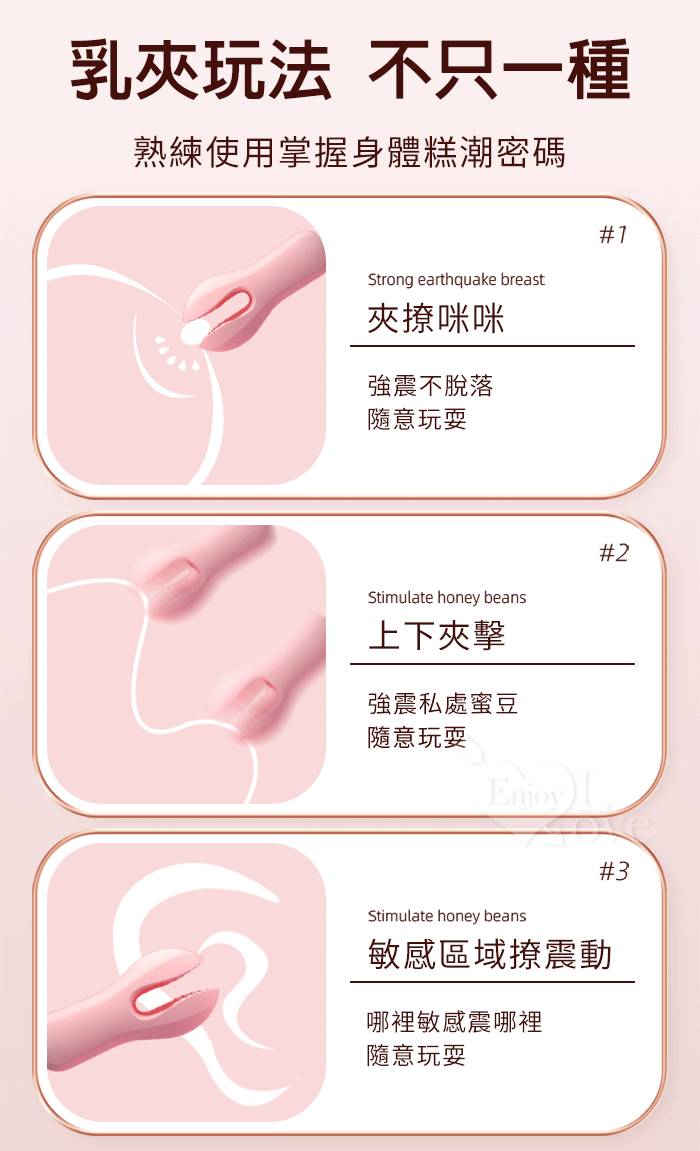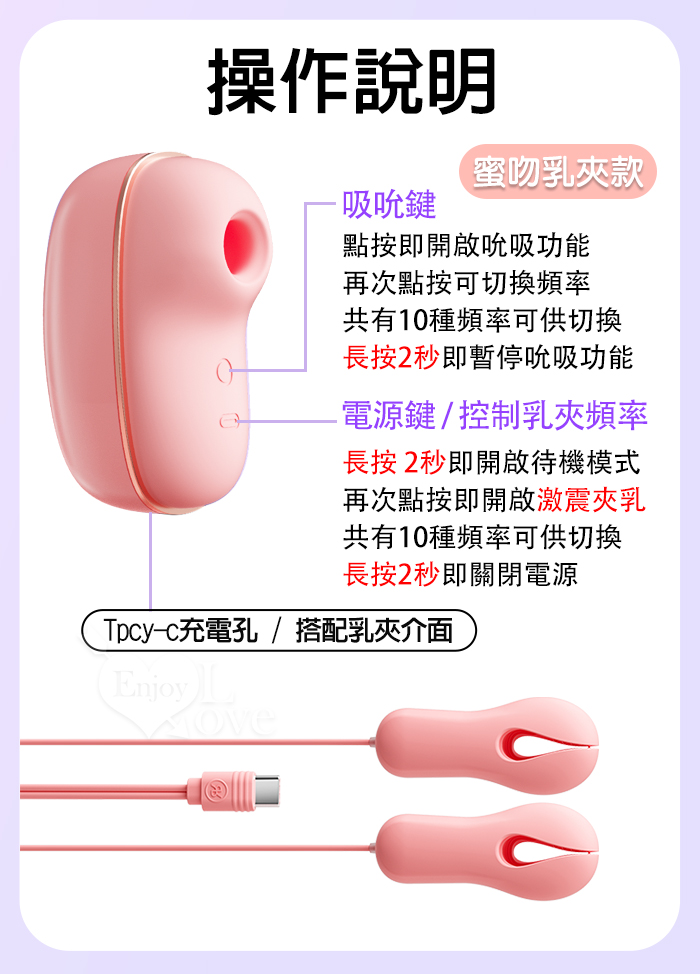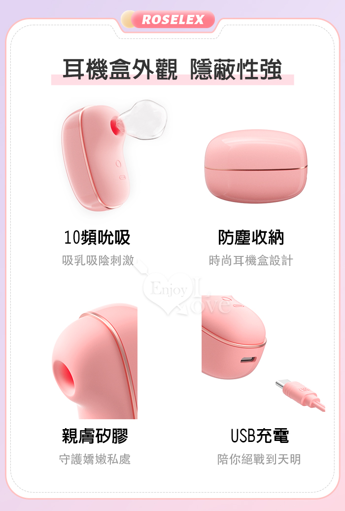 ►您現在的位置:首頁>ROSELEX 勞樂斯 ‧ 蜜吻乳夾款~吮吸+激震雙夾乳二合一組合按摩器﹝10頻調控+時尚耳機盒+USB充電﹞粉