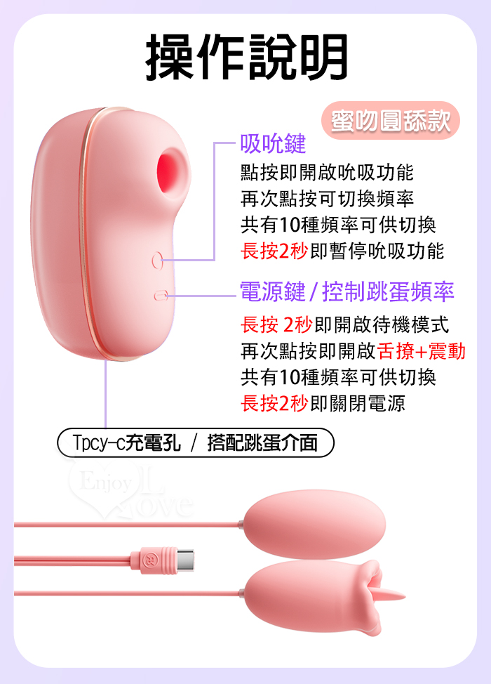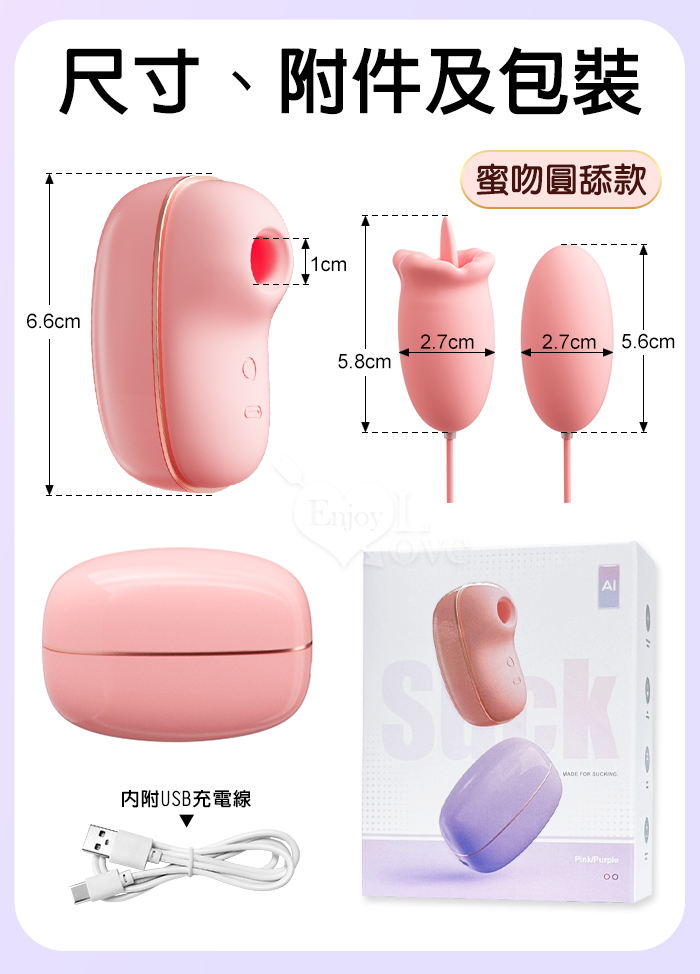 ROSELEX 勞樂斯 ‧ 蜜吻圓舔款~10頻酥震+舌撩+吮吸三合一組合按摩器﹝時尚耳機盒+USB充電﹞粉