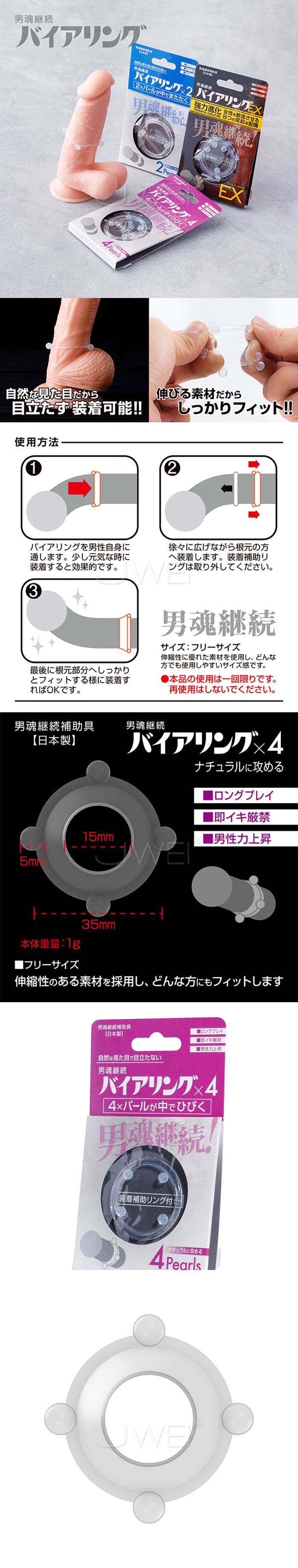 このバイアリング4Pearlsは4つのパールが中でひびき、ナチュラルに刺激します。