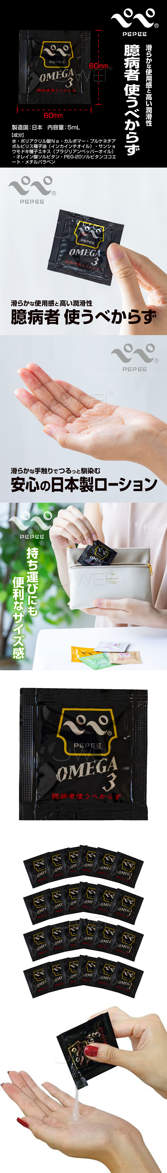 人気のぺぺローションオメガ3の1回使い切りタイプが登場です。 片手に収まるポケットサイズだから持ち運びは楽チン。 カバンや財布などにスッとしまえて、気軽に持ち運べます。 旅行先や出張先でも気軽にお使いいただけます。 1回で使い切るサイズ感なので、使った後はポイっと捨てるだけ。 時間のない時や、一回分だけ使いたい時にとても便利です。 サッと適量を使えるこの便利さをご堪能ください。 ■商品サイズ:80×66×66mm ■本体サイズ:60×60×4mm ■商品重量:141g ■総重量:5g