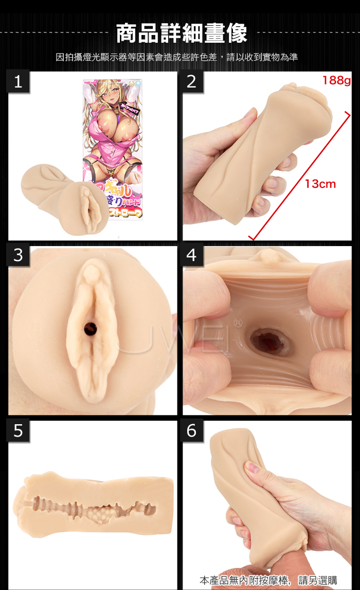 190gのお手軽サイズでギャルを堪能! デカイボ、ツブヒダ、ツブマシの構造を全長120mのボディに詰め込み性能も抜群! ローション付属で買ってすぐに楽しめます。 ■外装サイズ:180×75×56mm ■外装重量:233g ■商品サイズ:120×60×50mm ■商品重量:190g ■付属品:ローション