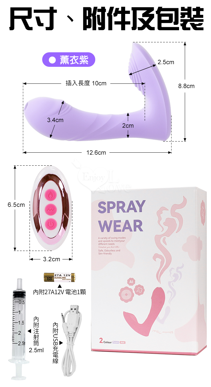 ROSELEX 勞樂斯 ‧ 潮噴 無線遙控另類噴霧刺激 內外雙震按摩器﹝10頻強震動/內外同刺激/舒適矽膠/隱形穿戴﹞薰衣紫