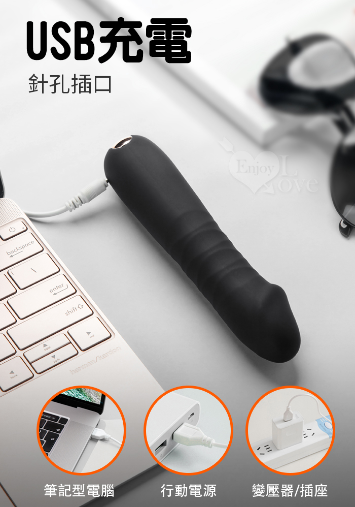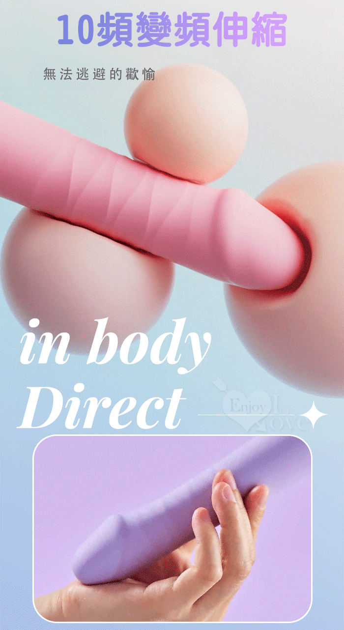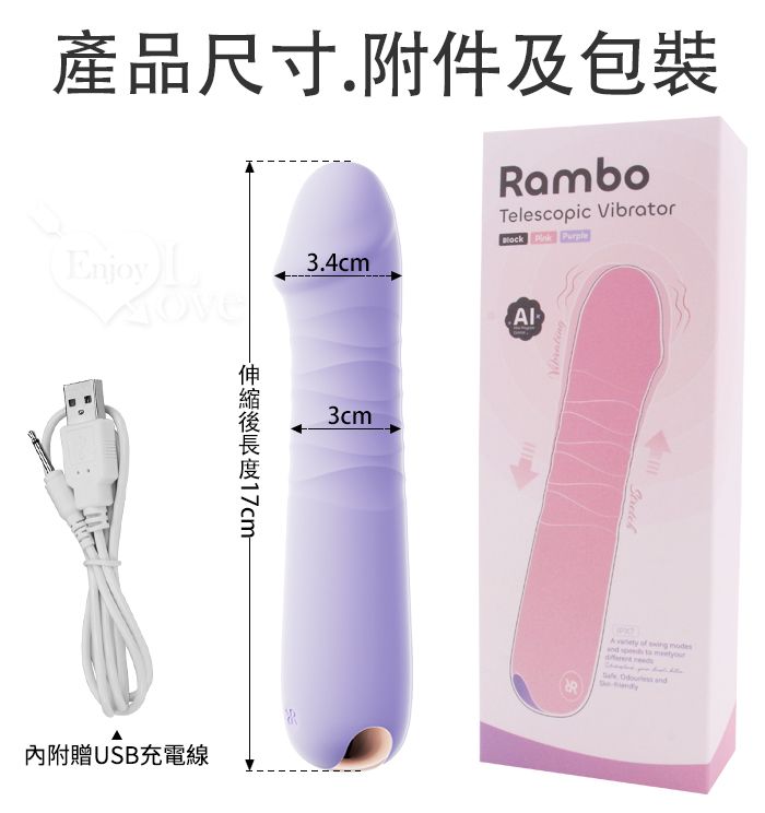 ROSELEX 勞樂斯 ‧ 蘭博 10變頻伸縮頂撞震動老二按摩棒﹝爽滑入體+螺紋摩擦+USB充電﹞淺紫