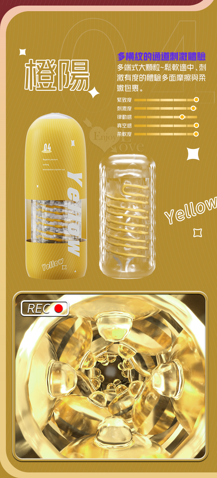 ROSELEX 勞樂斯 ‧ 內藏旋機-橙陽~扭簧旋轉夾吸訓練自慰飛機杯﹝多面橫紋內壁﹞