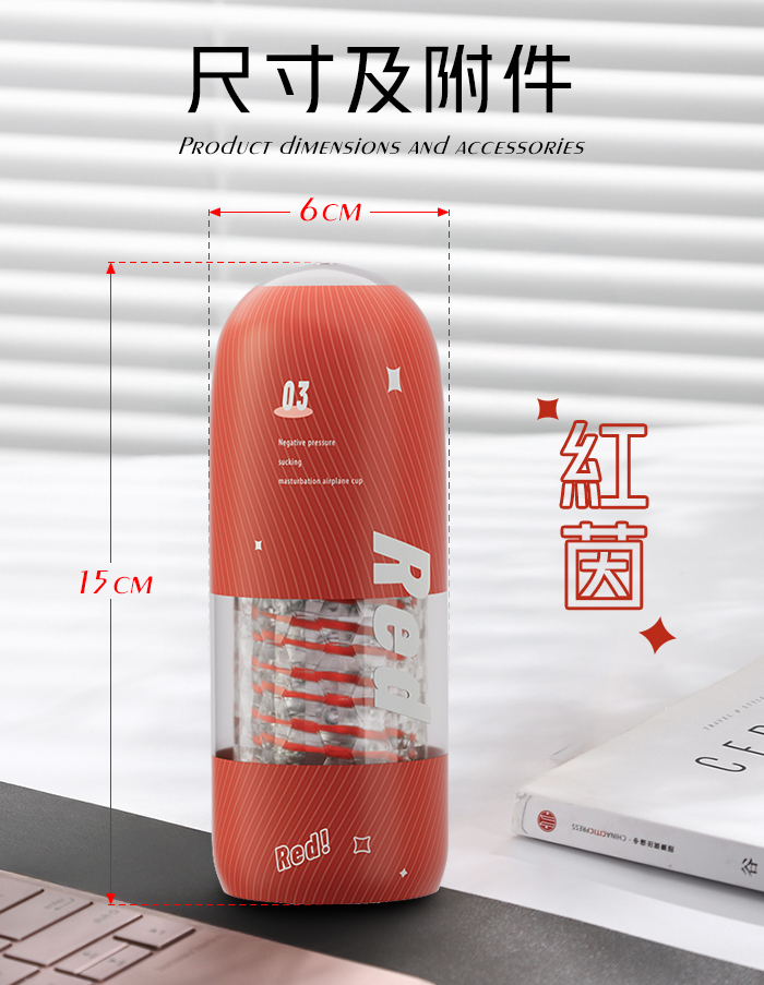 ROSELEX 勞樂斯 ‧ 內藏旋機-紅茵~扭簧旋轉夾吸訓練自慰飛機杯﹝逆向顆粒摩擦﹞