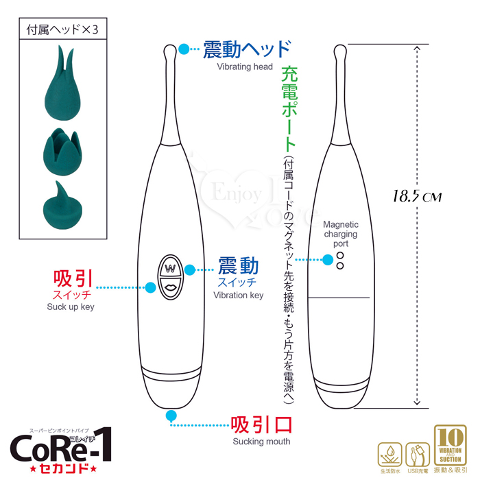 首頁>日本NPG.CoRe-1 10頻振動に吸吮極み記憶功能陰乳刺激按摩器﹝三件頭套組﹞