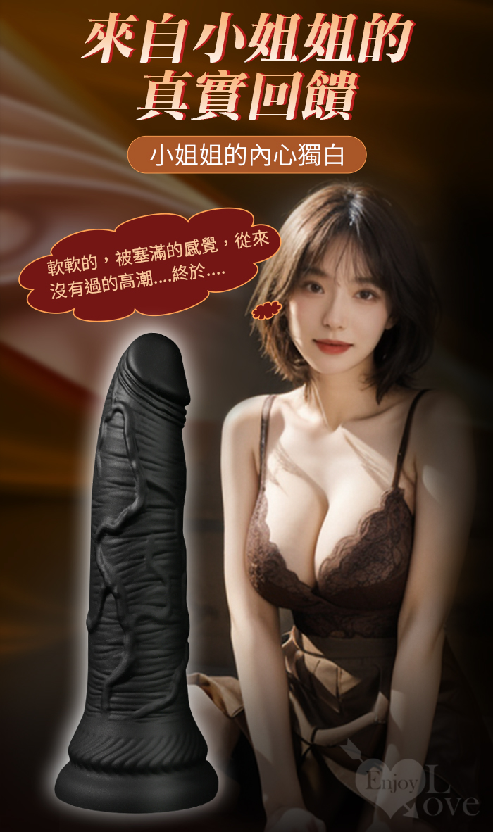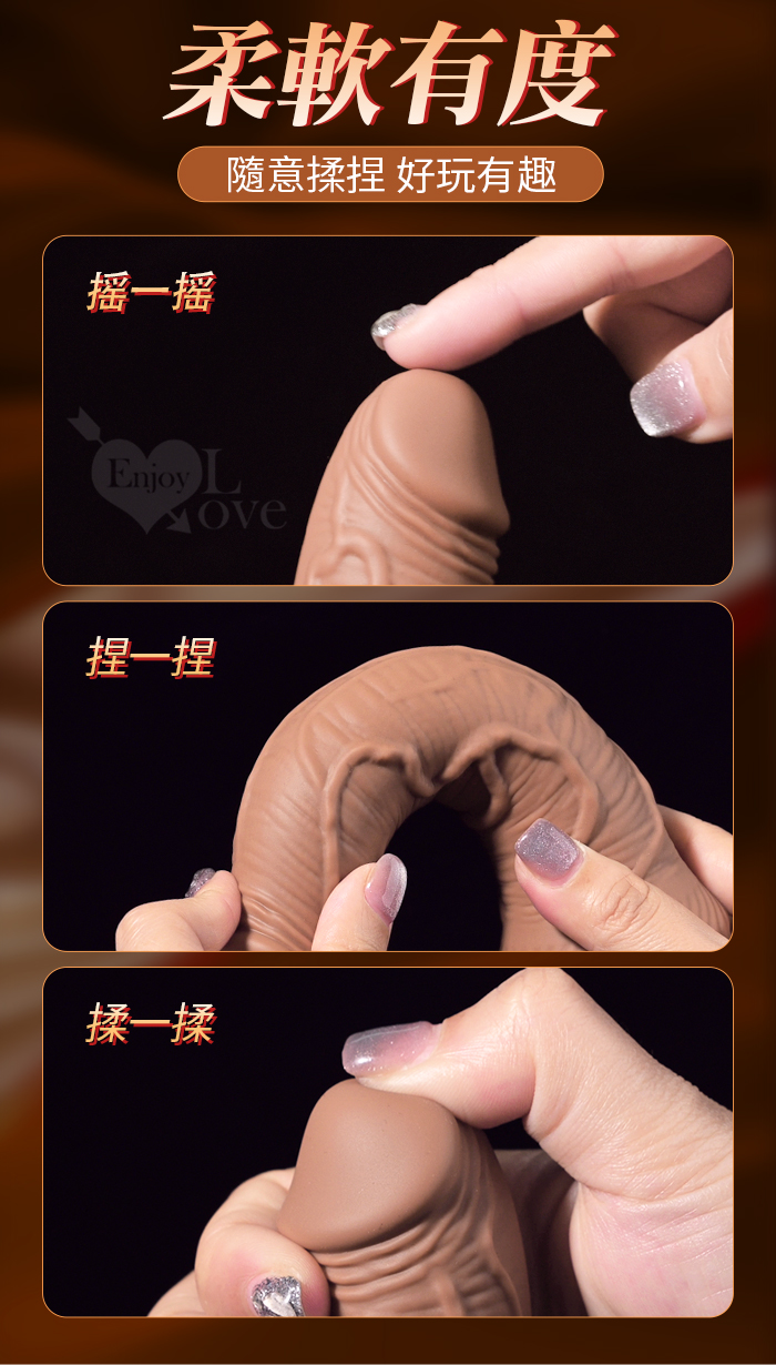萌屌 ‧ 真肉感矽膠軟Q肉彈加固吸盤仿真老二棒﹝黑色﹞適合東方女性