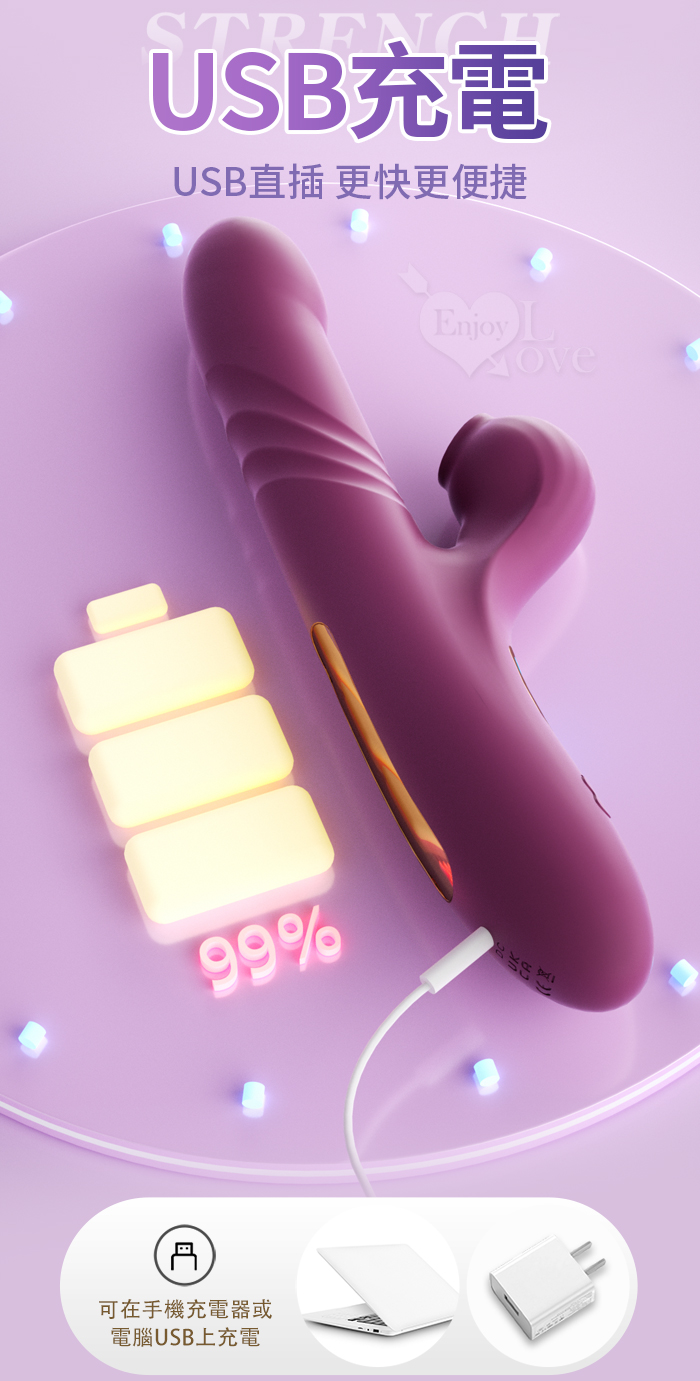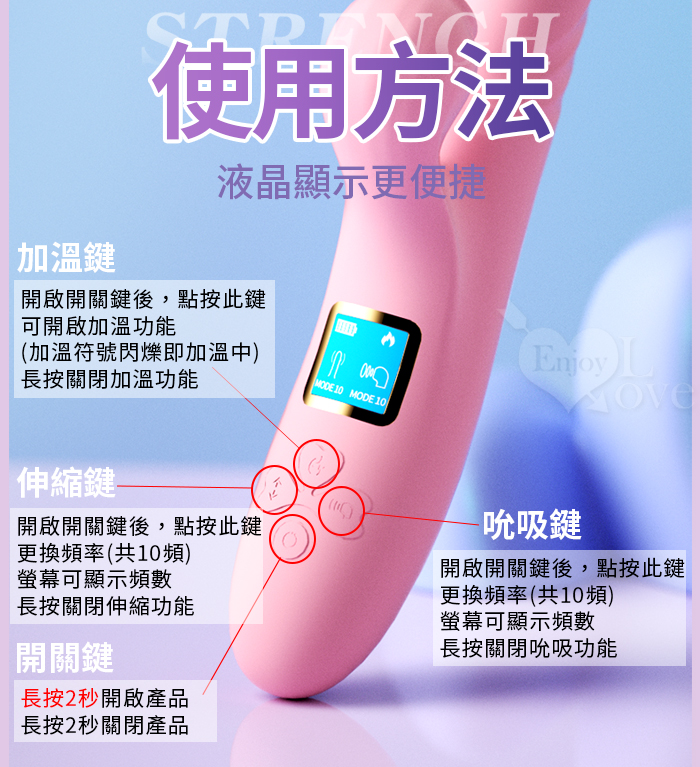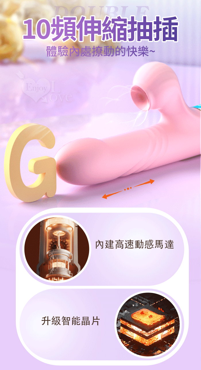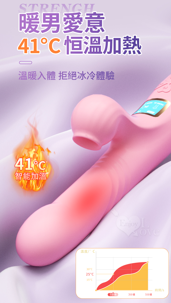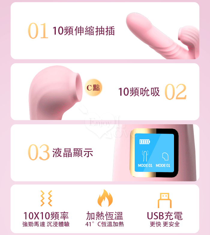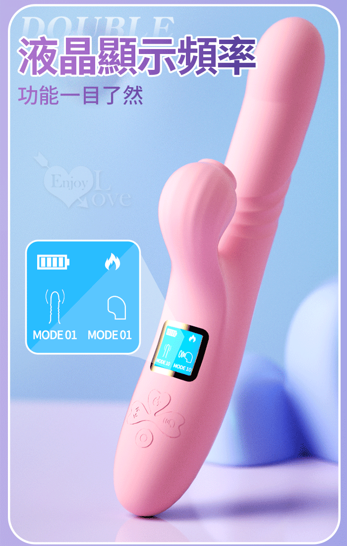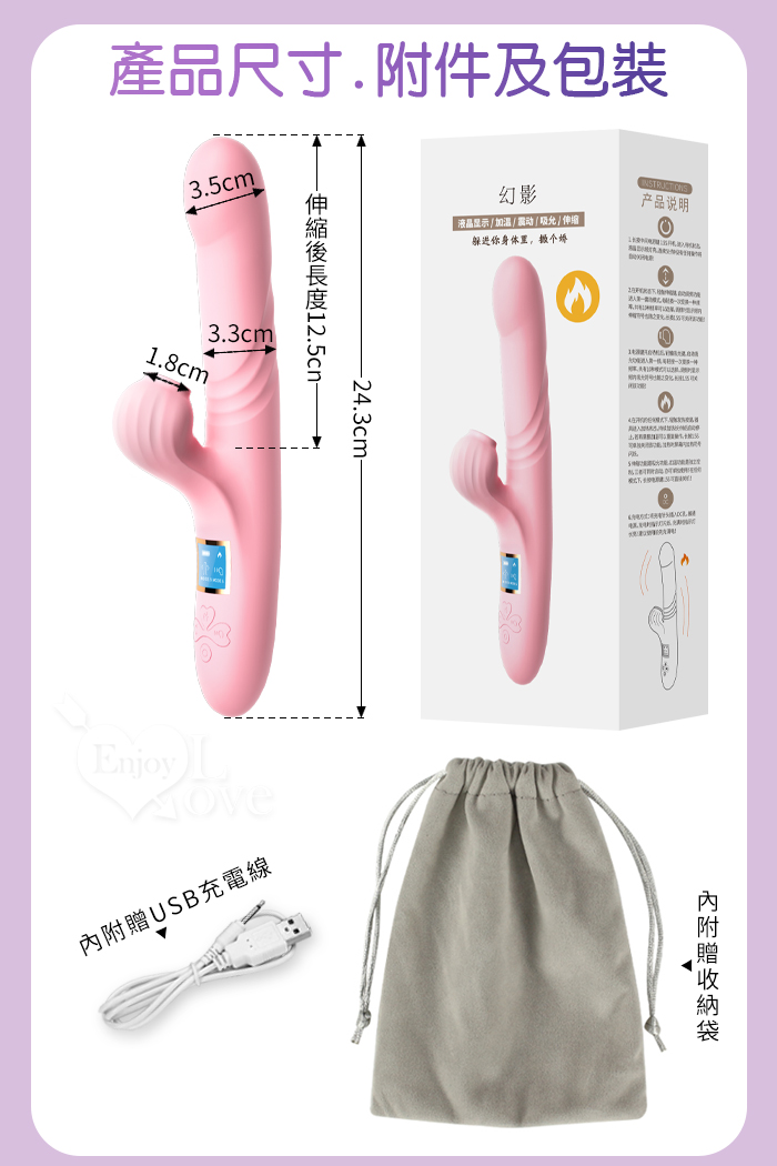 幻影 ‧ 10頻伸縮抽插X10頻吮吸智能內外夾攻按摩棒﹝加熱恆溫+液晶顯示頻率+USB充電﹞甜蜜粉