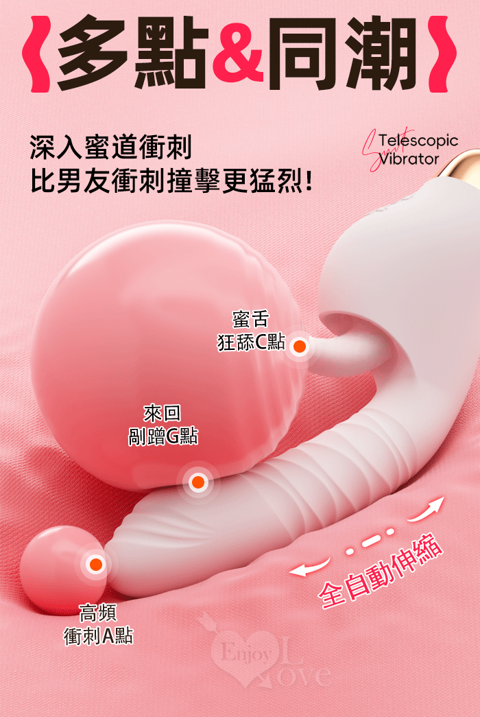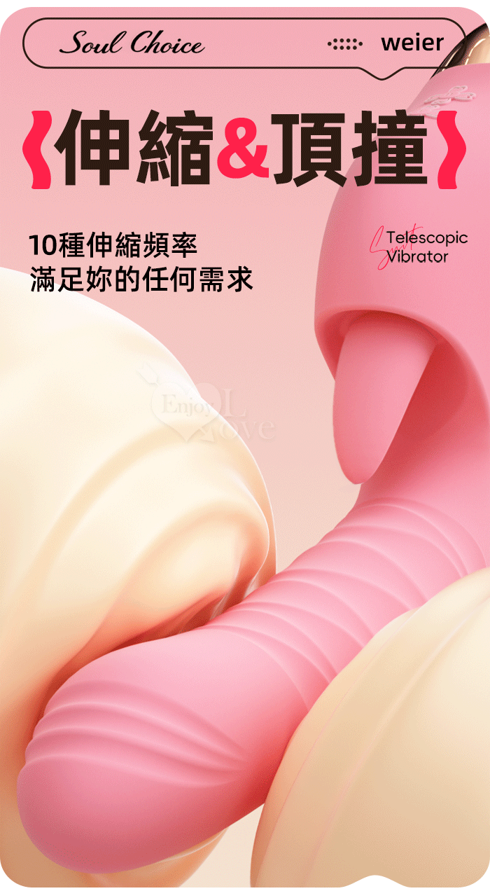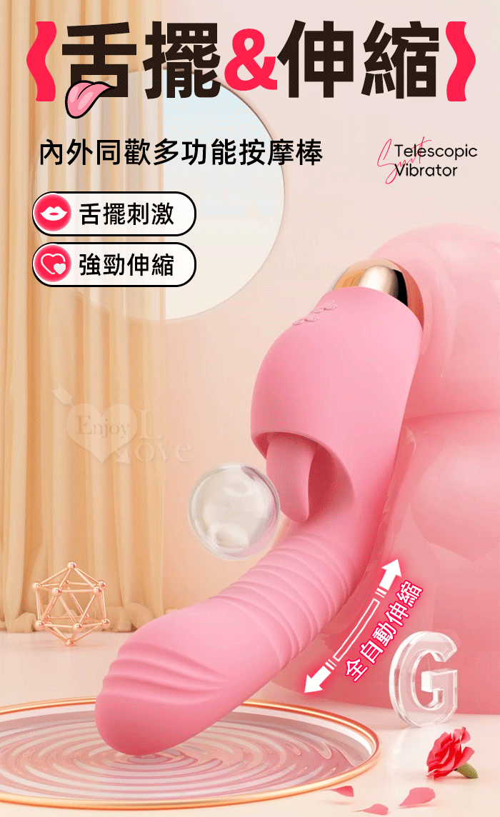 ROSELEX 勞樂斯 ‧ 薇爾 伸縮款 10X10伸縮衝撞+舌擺刺激 內外同歡多功能按摩棒