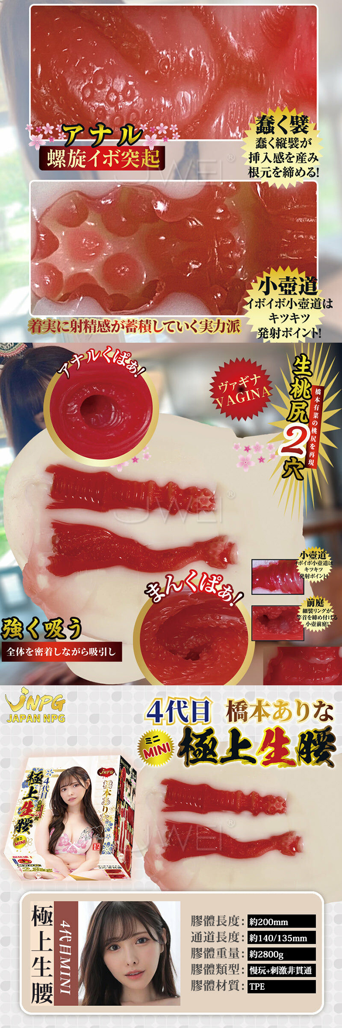 日本原裝進口NPG.4代目ミニ極上生腰 四代雙穴蜜桃尻自慰名器【 橋本ありな-2.8kg】