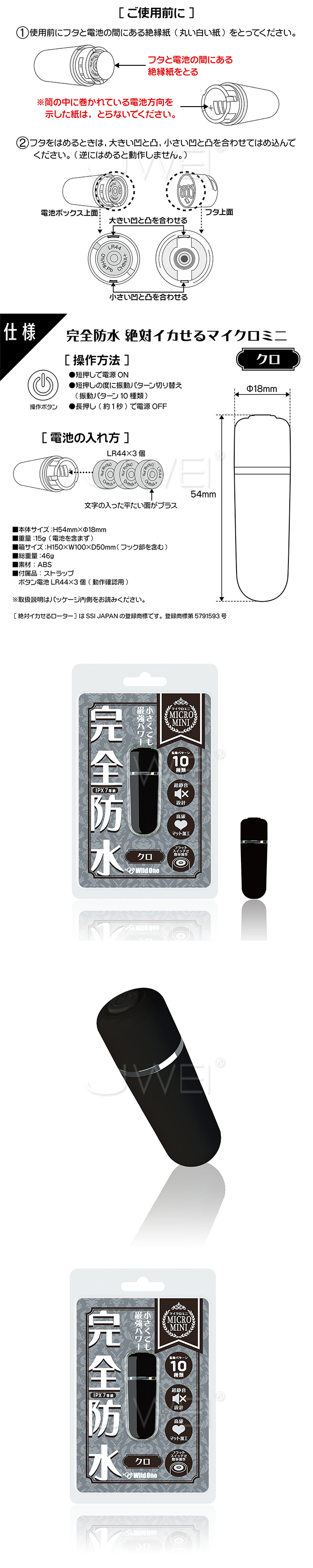 日本原裝進口Wild One.MICRO MINI 完全防水 絶対イカせる 10段強震迷你跳蛋【黑色】