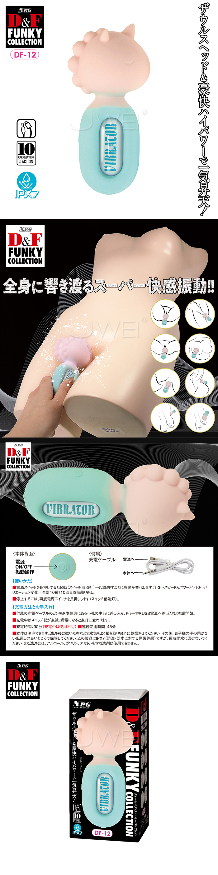 日本原裝進口NPG.D&F FUNKY COLLECTION 10頻強馬達爆顫獨角獸鋼炮漸變色AV棒【DF-12】
