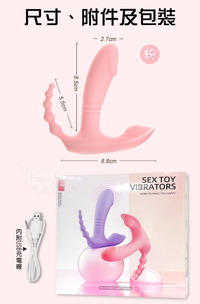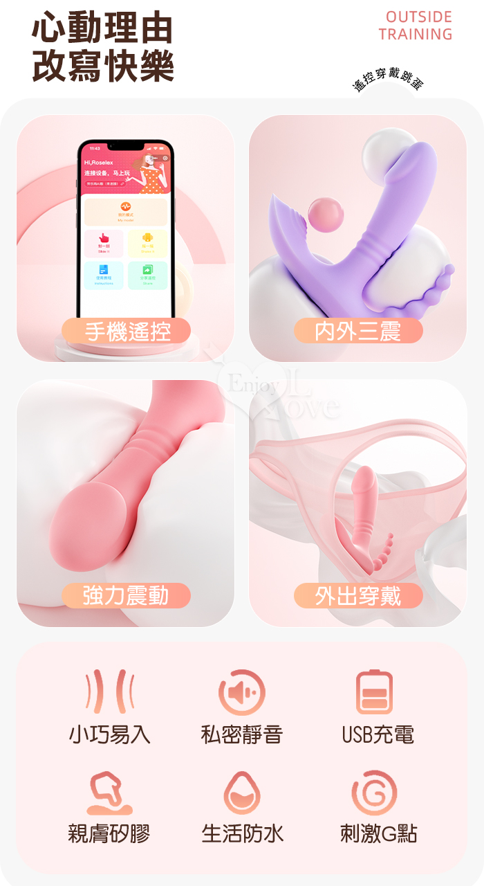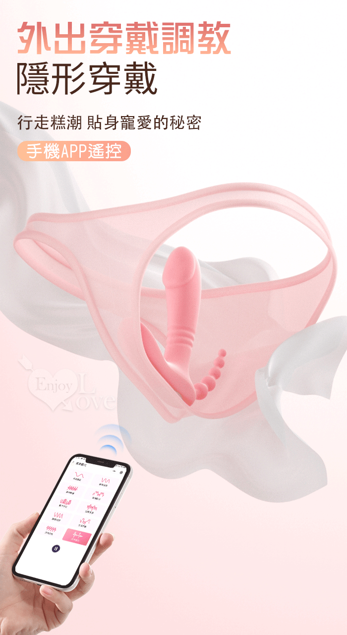 ROSELEX 勞樂斯 ‧ 悅逗 10頻雙馬達震動三點拉珠刺激穿戴按摩器 - 可手機APP遙控﹝具兩種操控模式﹞粉