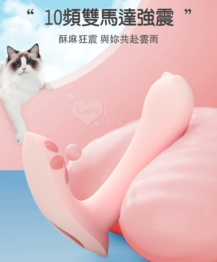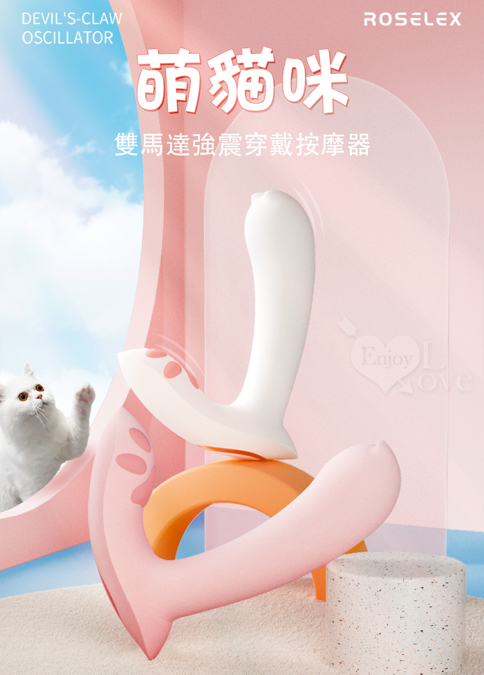 ROSELEX 勞樂斯 ‧ 萌貓咪 10頻內外雙馬達強震穿戴按摩器 - 可手機APP遙控﹝具兩種操控模式﹞淺粉